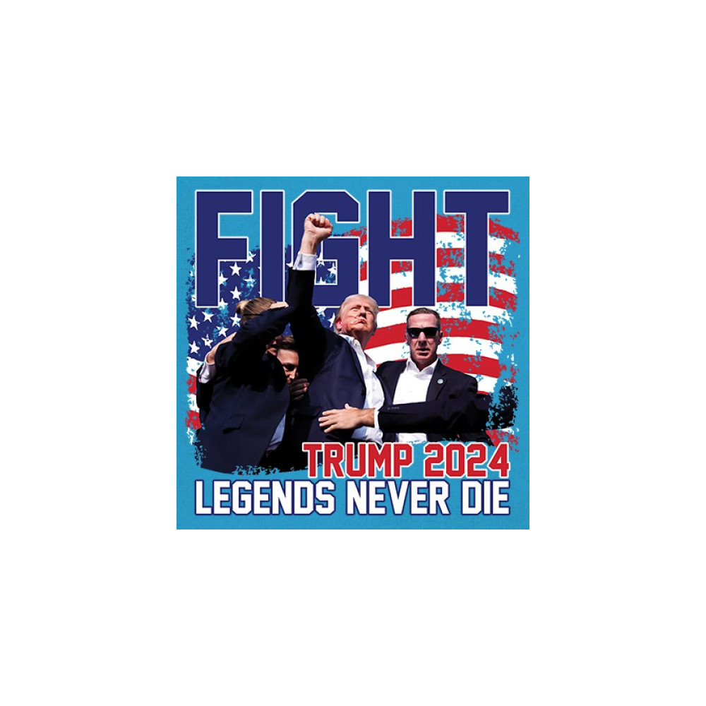 Stand proud and show your support for the Trump 2024 campaign with our exclusive "Fight" design. This striking graphic features Donald Trump alongside the inspiring phrase "Legends Never Die," set against a patriotic American flag backdrop. Ideal for rally events and everyday wear, this design captures the spirit of determination and victory. It’s perfect for those who stand by conservative values and trust in Trump's leadership. Celebrate your patriotism and join fellow supporters in making a bold statement for America's future with this must-have design.