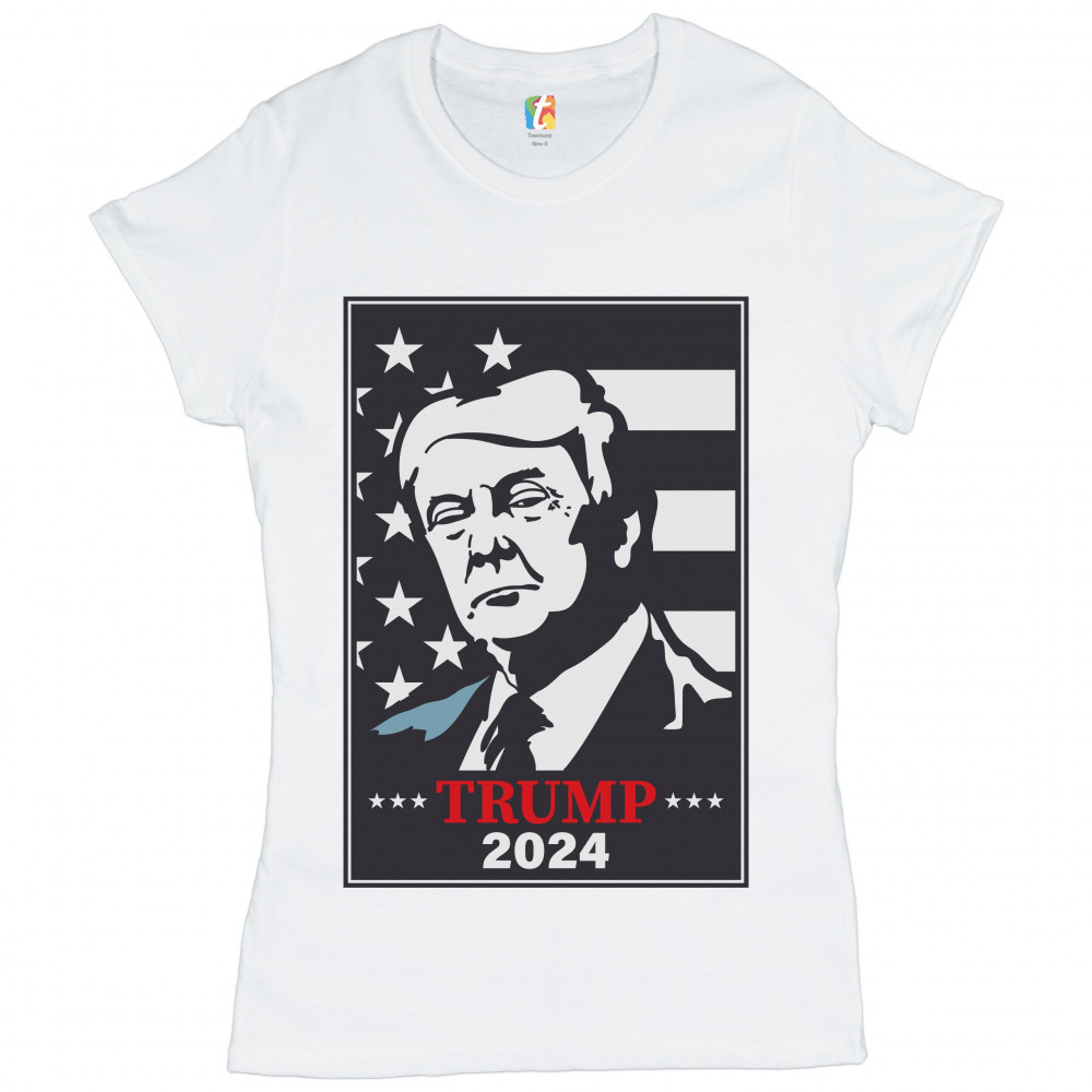TRUMP 2024 t-shirt keep america great re-elect donald trump women's tee white