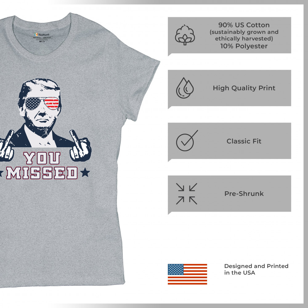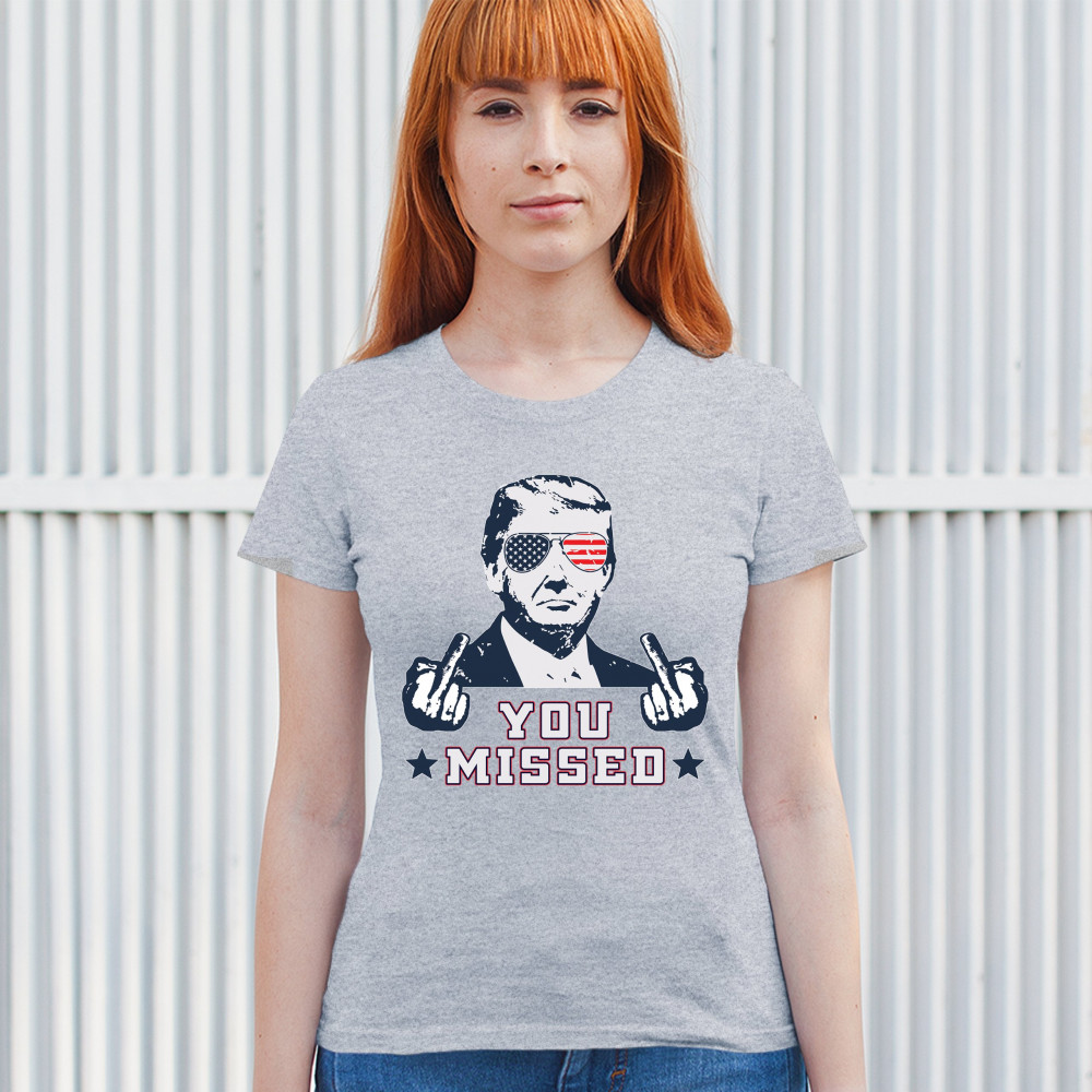 Celebrate Trump's resilience with this bold "You Missed" design. Perfect for rallies and political events. Show your unwavering support for conservative values.