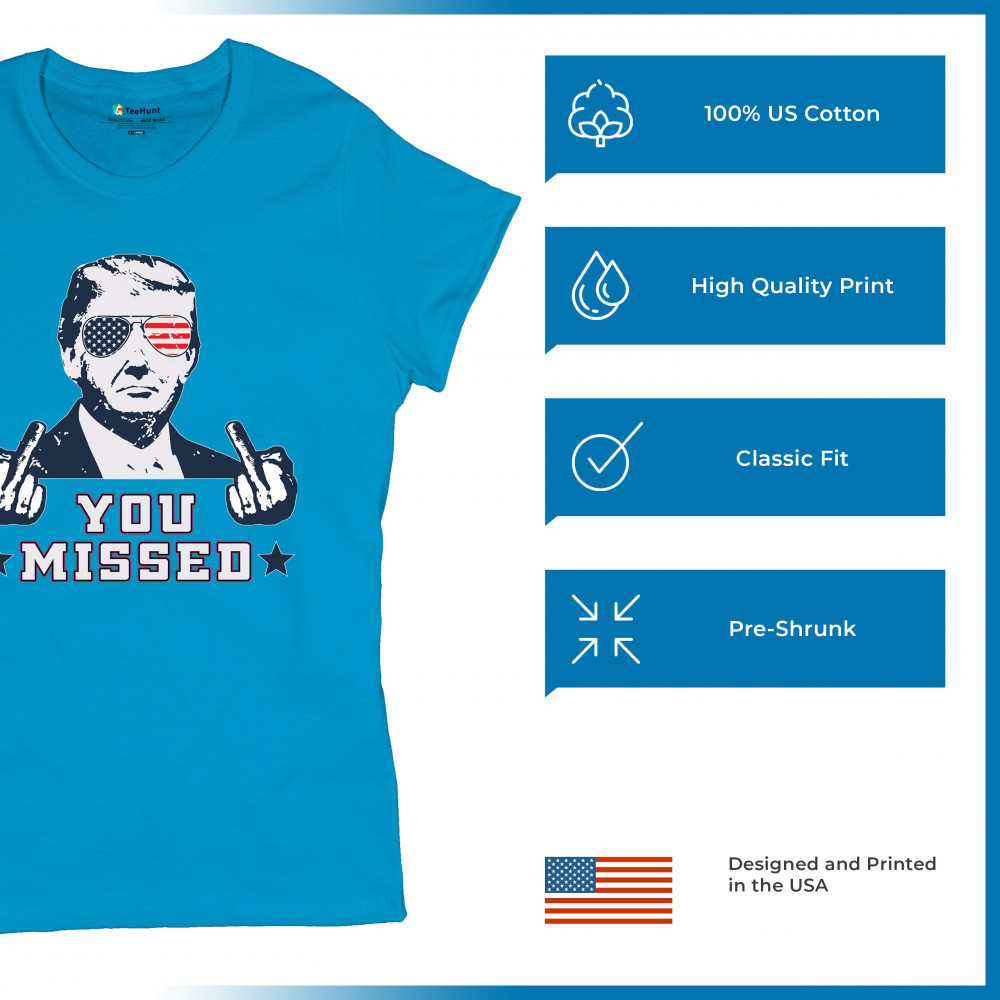 Celebrate Trump's resilience with this bold "You Missed" design. Perfect for rallies and political events. Show your unwavering support for conservative values.