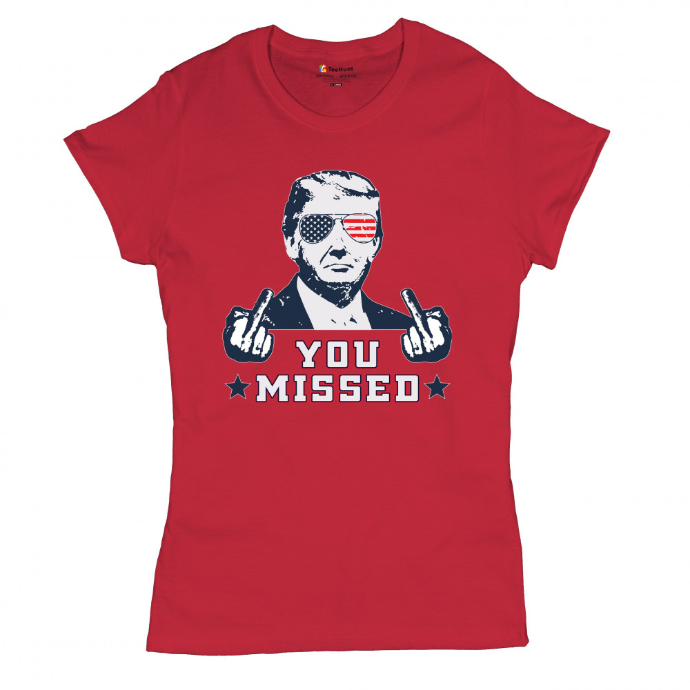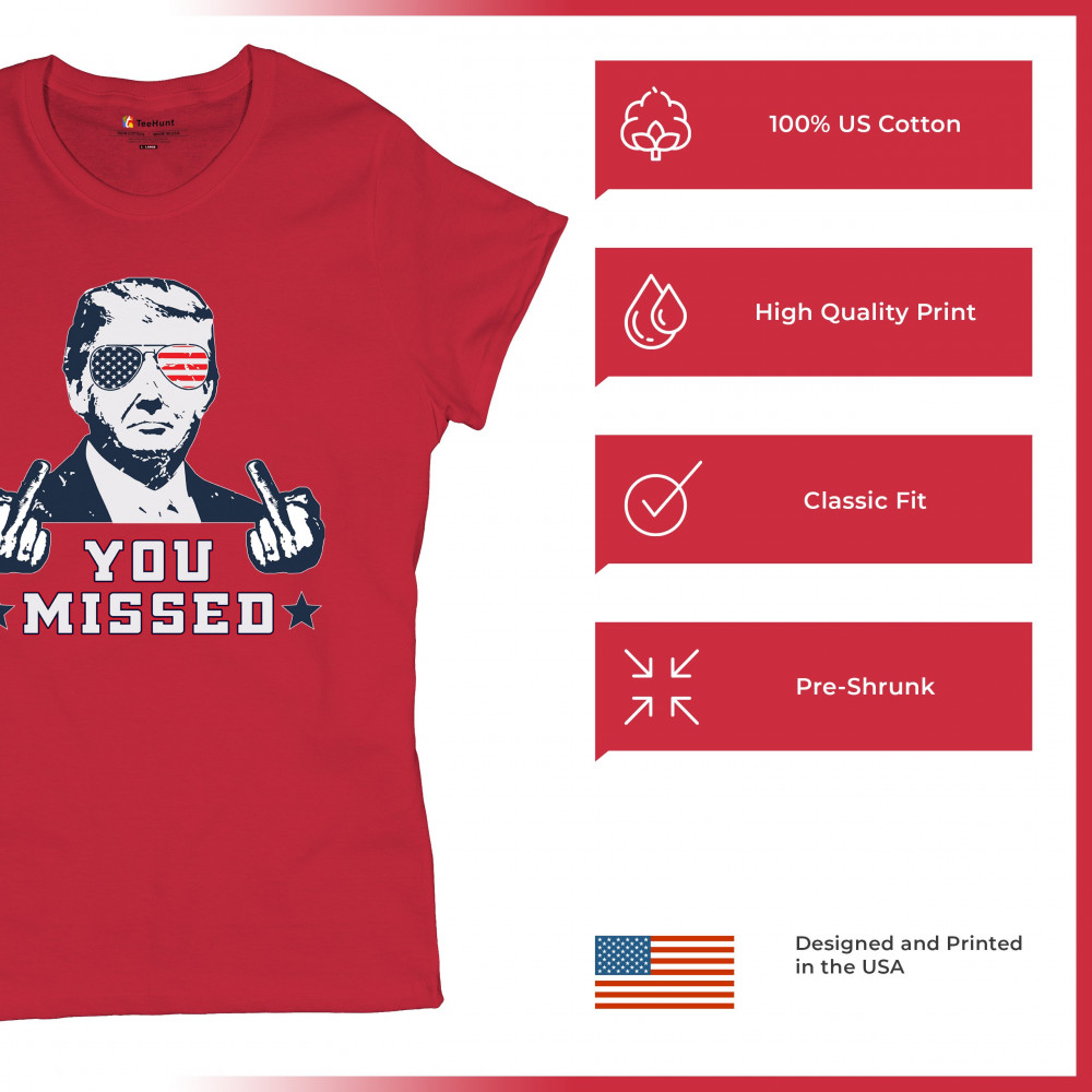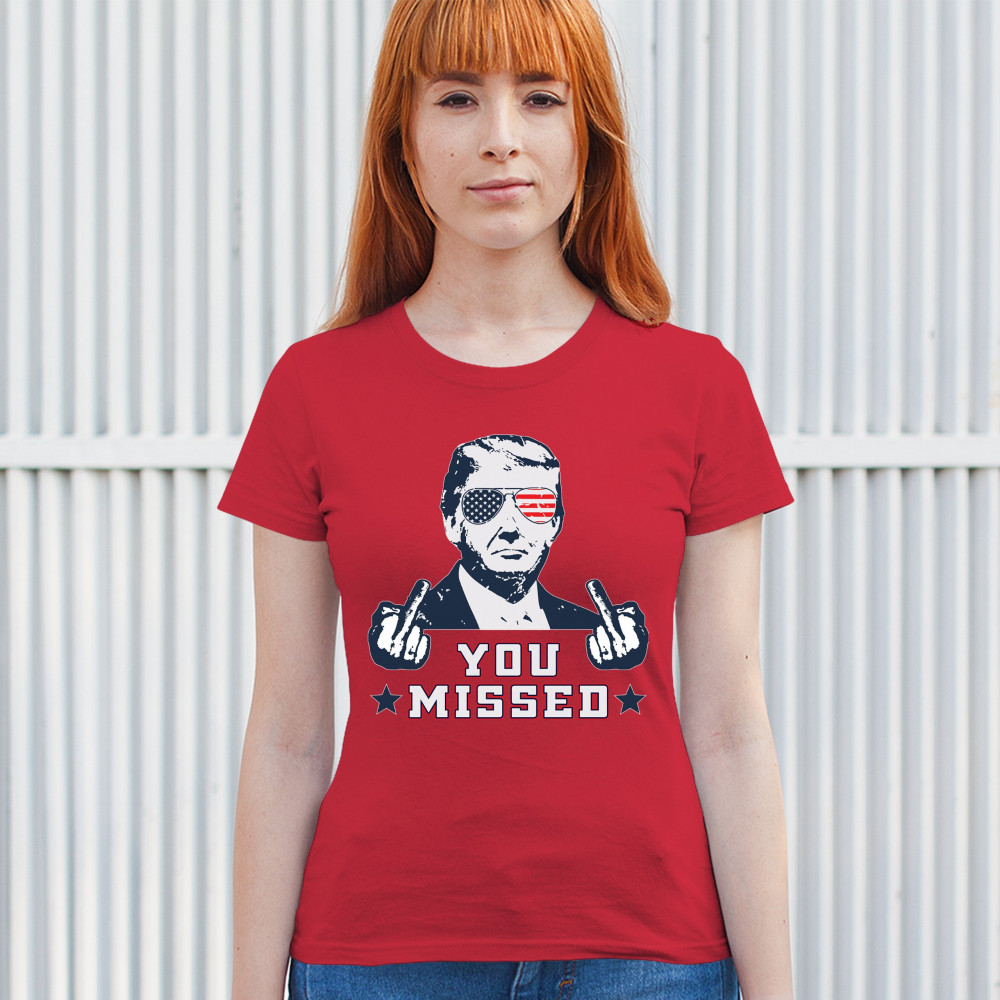 Celebrate Trump's resilience with this bold "You Missed" design. Perfect for rallies and political events. Show your unwavering support for conservative values.