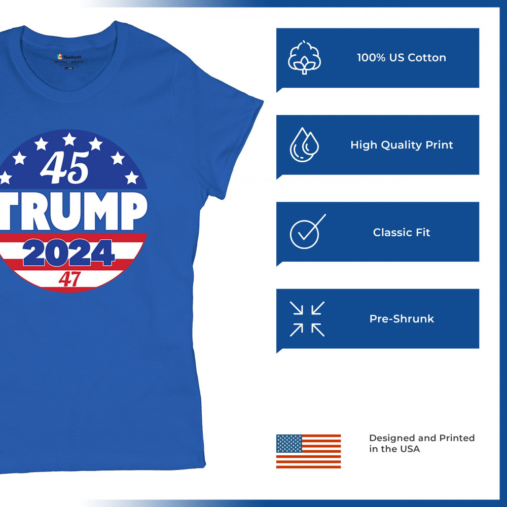Embrace your conservative pride with this bold "45 TRUMP 2024" design. Representing America First, Republican victory, and the people’s mandate, it’s the perfect way to showcase your support for Donald J. Trump’s historic journey to the 47th presidency. Whether at rallies, political events, or casual outings, this emblem unites Trump supporters in a fight for freedom and patriotism.