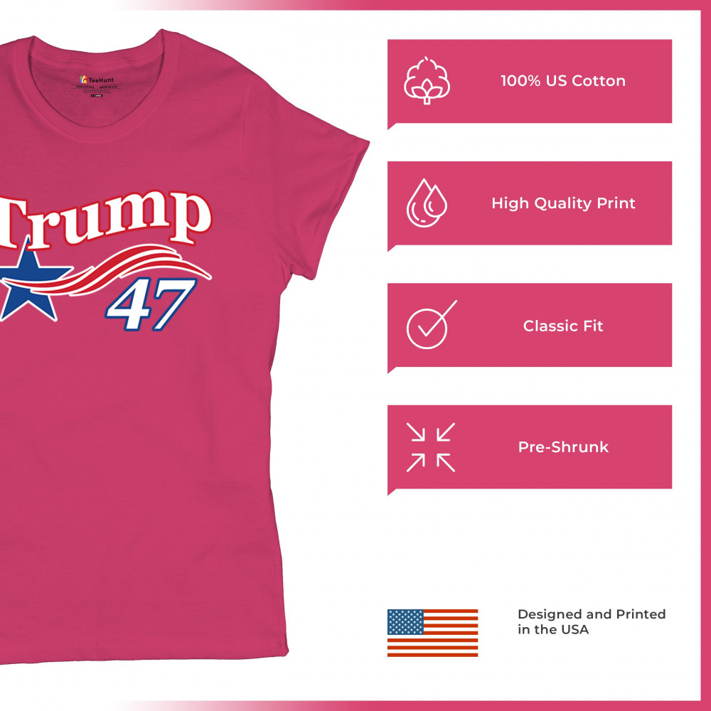 "Trump 47" design for patriotic Trump supporters, celebrating conservative values, Red Wave, and America First with pride and unity for the future.