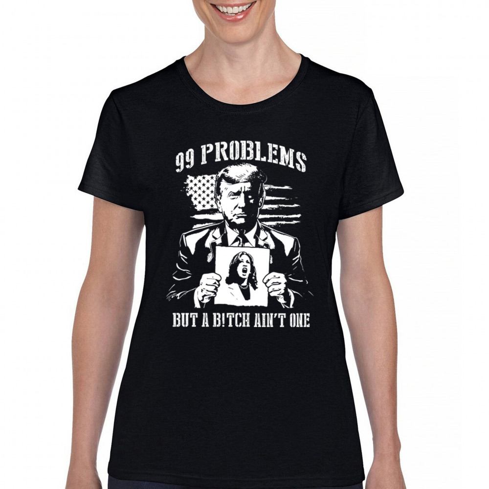 TRUMP 99 PROBLEMS BUT KAMALA AIN'T ONE t-shirt president maga fight women's tee black