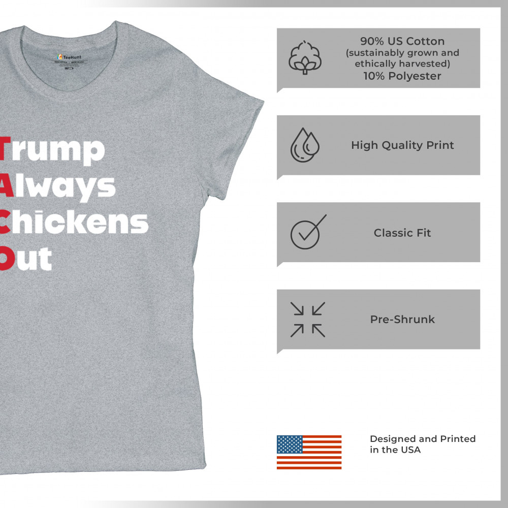 Trump Always Chickens Out is bold protest fashion for anti-dictator activists, political satire fans, and no kings supporters.