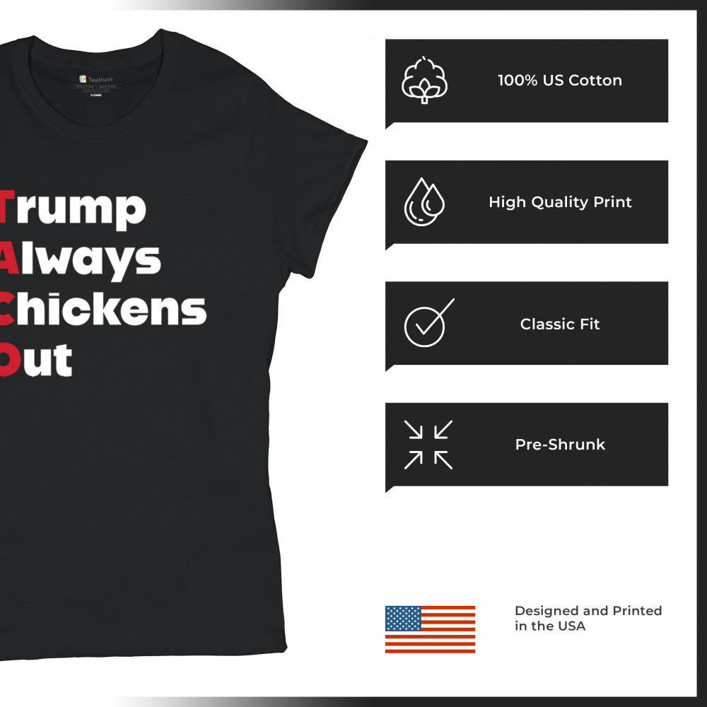 Trump Always Chickens Out is bold protest fashion for anti-dictator activists, political satire fans, and no kings supporters.