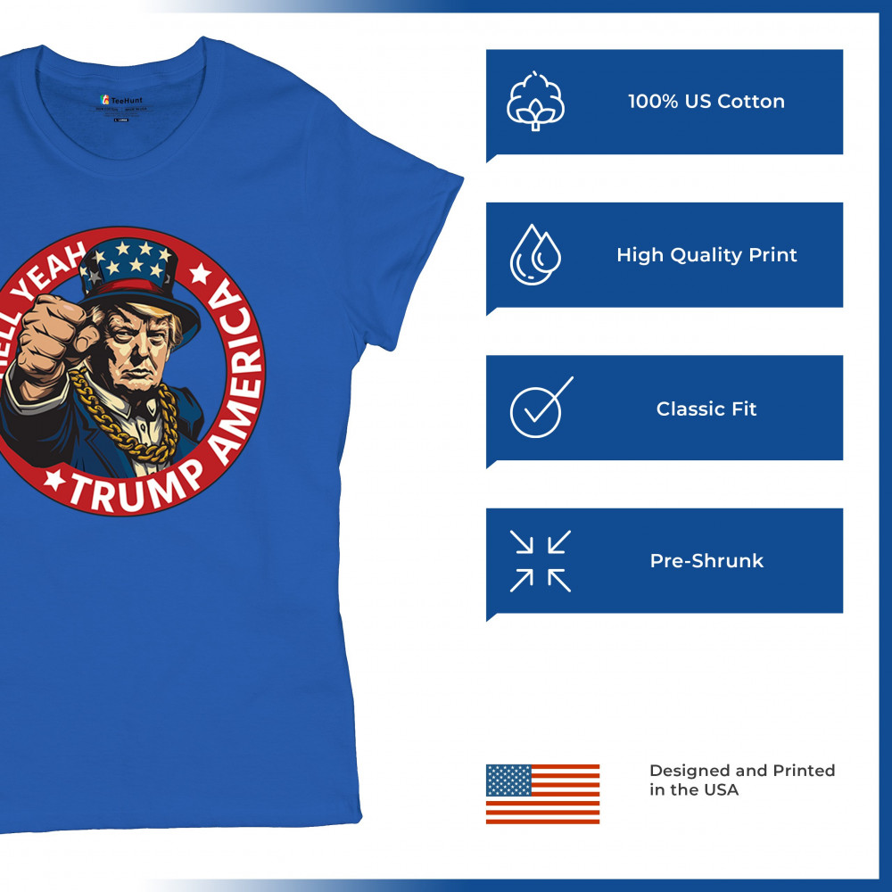 Support Donald Trump with the "Hell Yeah Trump America" design, representing conservative values, strength, and patriotism.