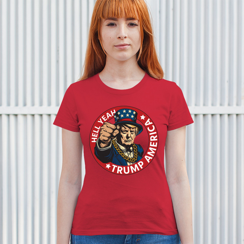 Support Donald Trump with the "Hell Yeah Trump America" design, representing conservative values, strength, and patriotism.