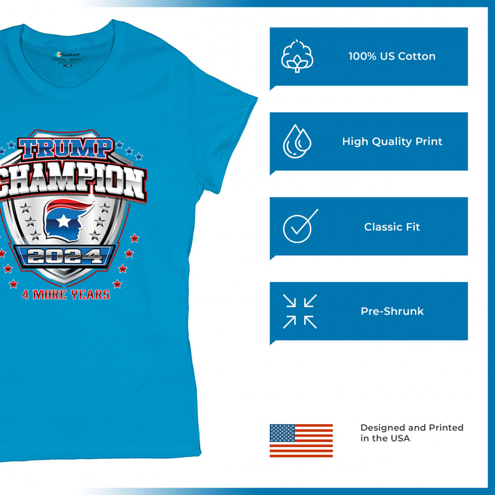 Celebrate Trump’s return with the "Trump Champion 2024" design. Perfect for patriots, conservatives, and those supporting 4 More Years of victory!