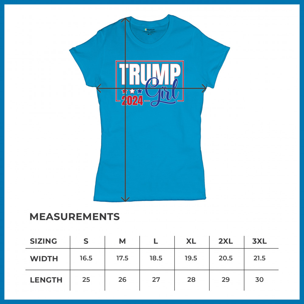 Stand out as a fierce advocate for President Trump's reelection campaign with our exclusive 'Trump Girl 2024' graphic tee. Embrace your role as a conservative leader and amplify your voice in support of America First policies. Let's rally together, united in our commitment to securing another term for President Trump. Join the movement and be a part of history in the making.