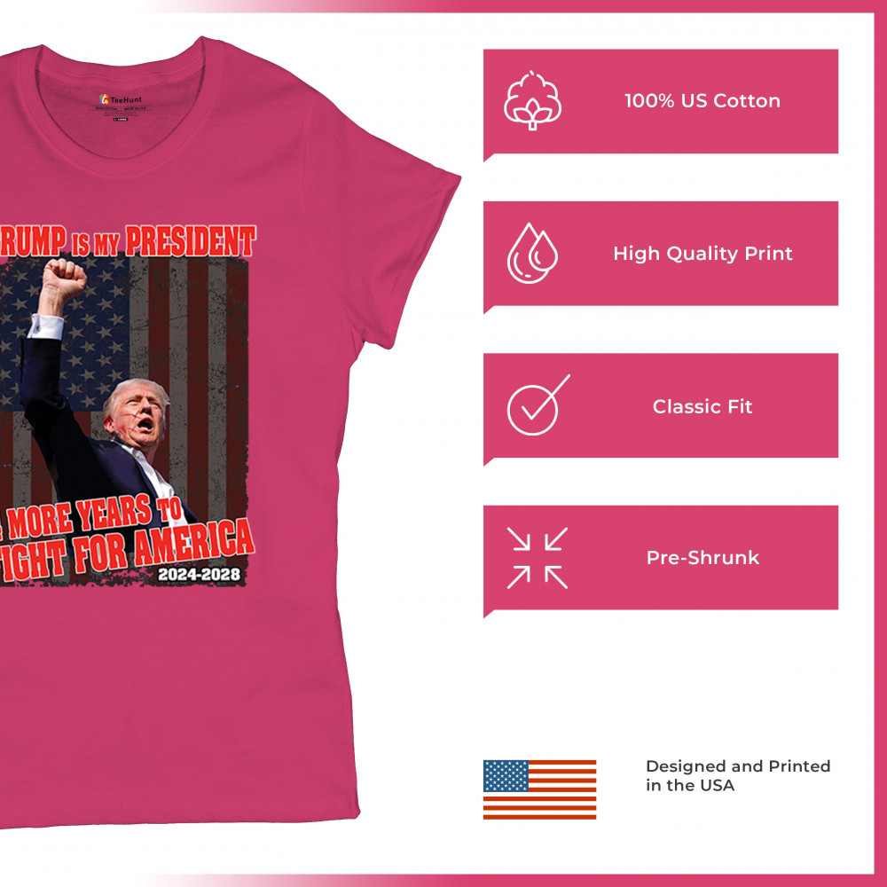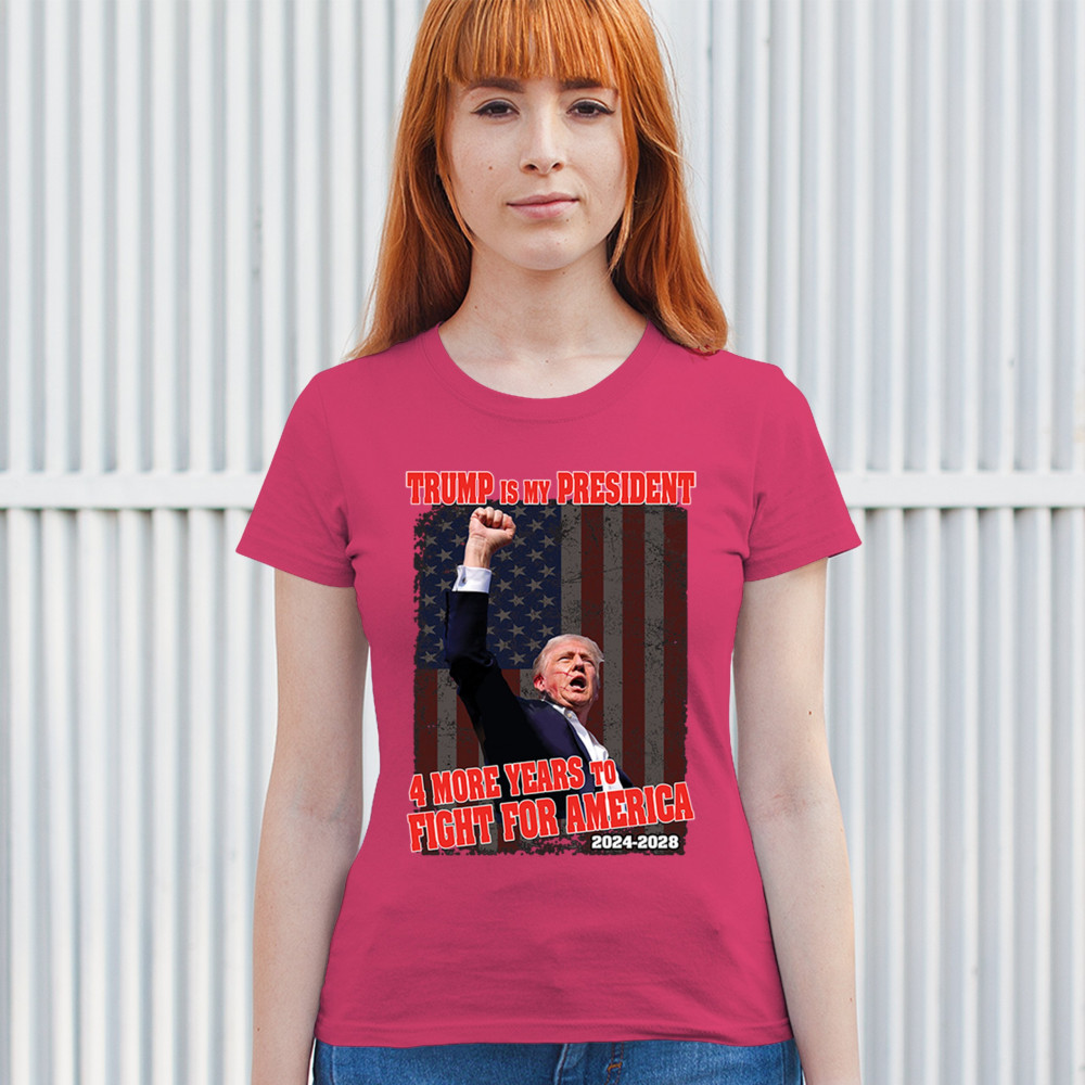 Show your support for Trump with the "4 More Years to Fight for America" design. Perfect for patriots, conservatives, and America First advocates.