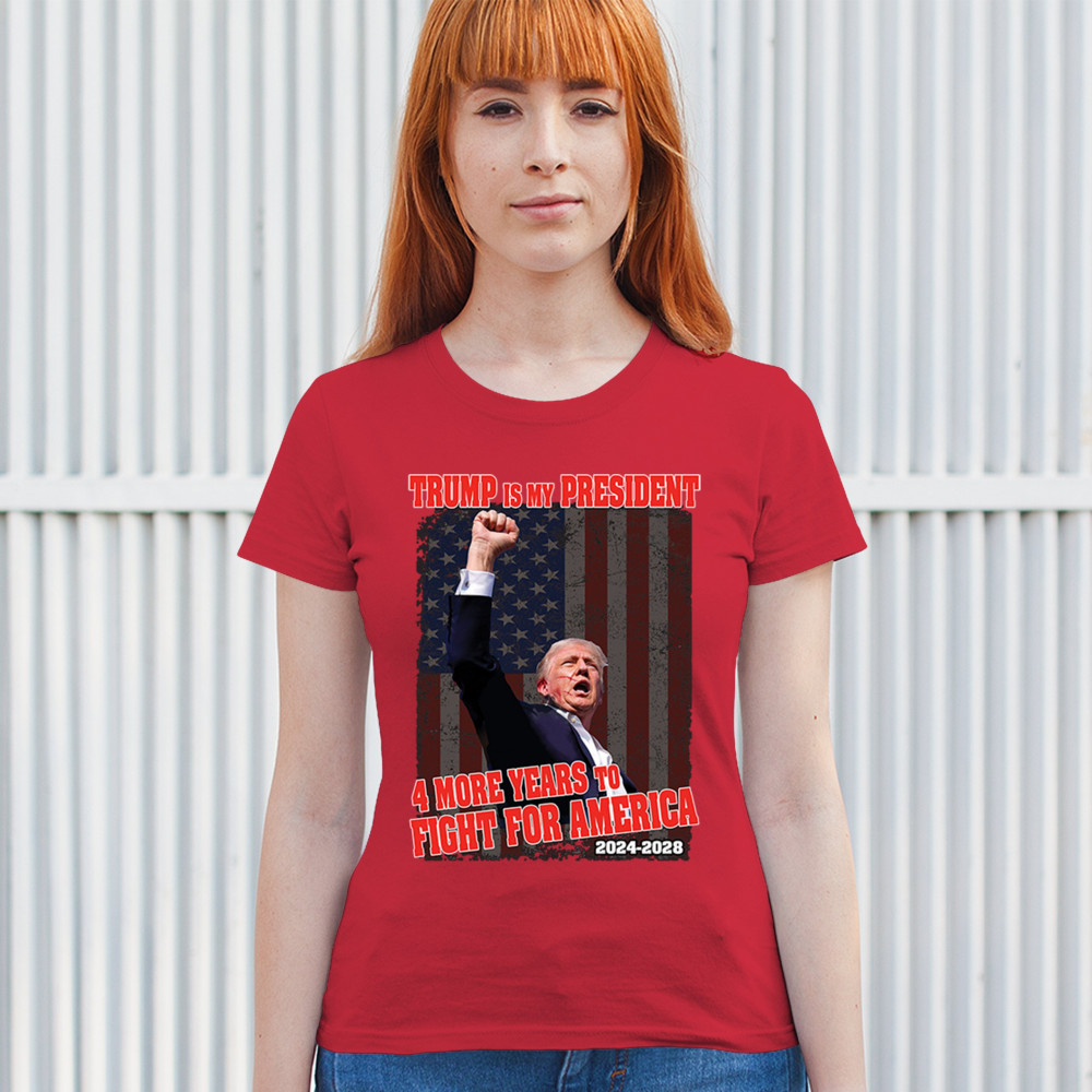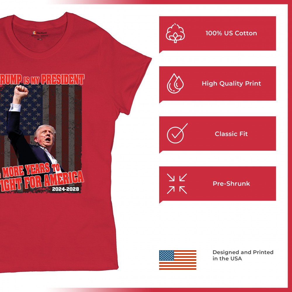 Show your support for Trump with the "4 More Years to Fight for America" design. Perfect for patriots, conservatives, and America First advocates.