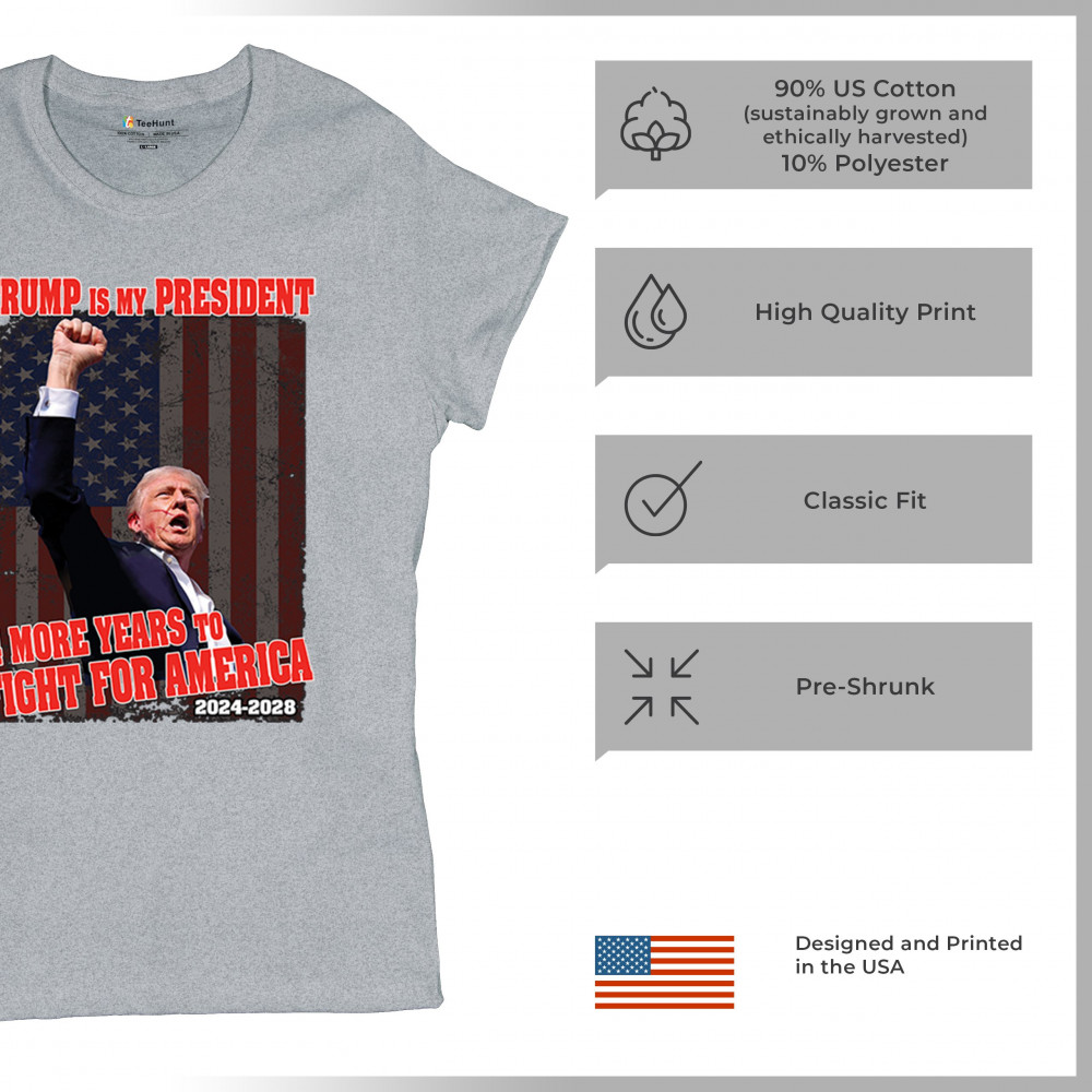 Show your support for Trump with the "4 More Years to Fight for America" design. Perfect for patriots, conservatives, and America First advocates.