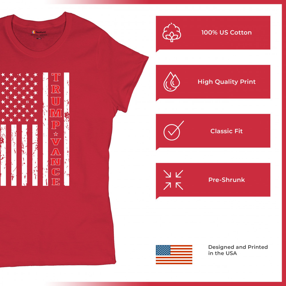 Show your support for Trump Vance 2024 with a bold, rustic American flag design. Perfect for rallies and daily wear. Patriotic and durable.