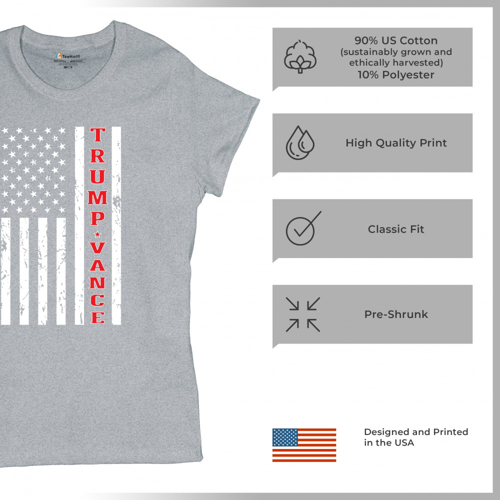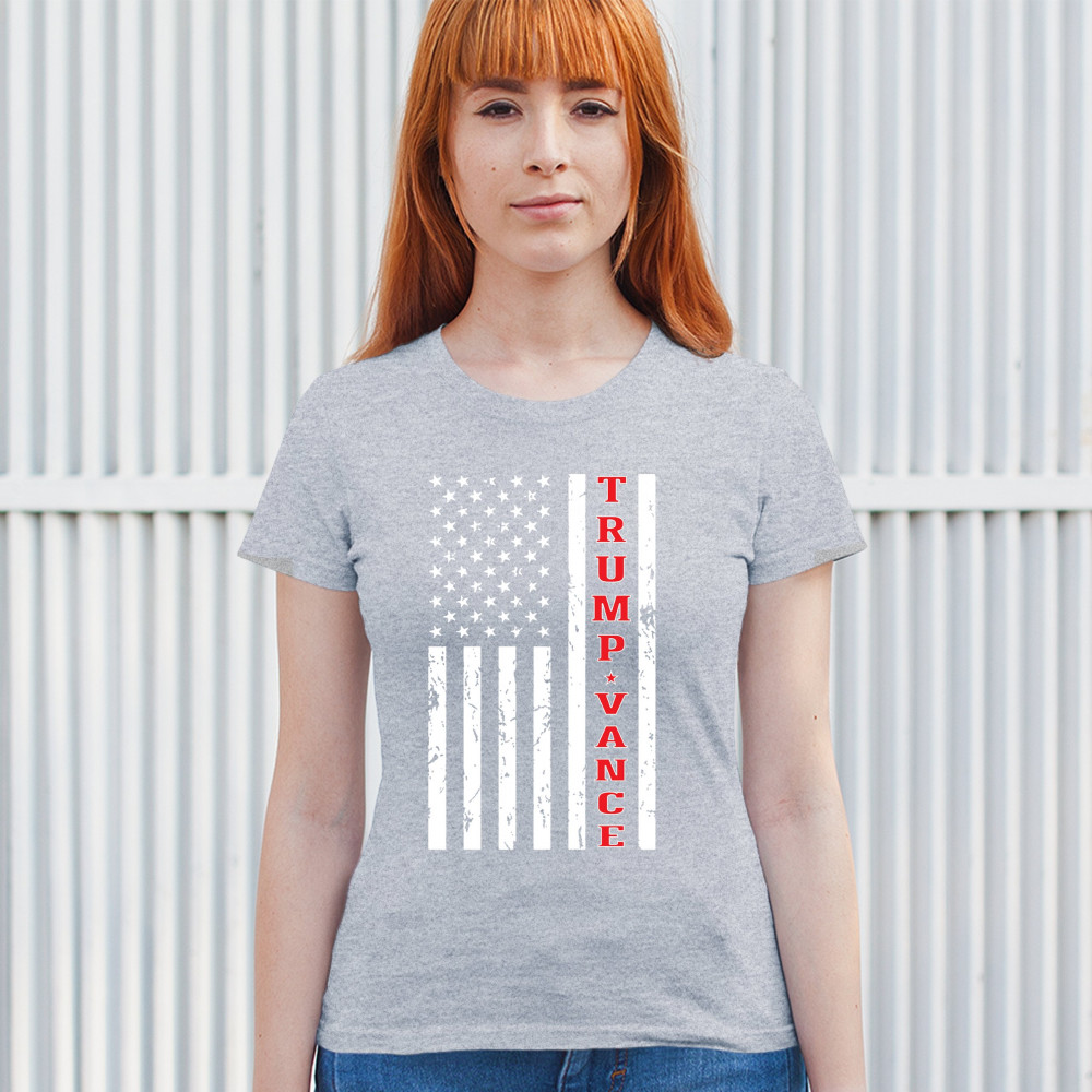 Show your support for Trump Vance 2024 with a bold, rustic American flag design. Perfect for rallies and daily wear. Patriotic and durable.