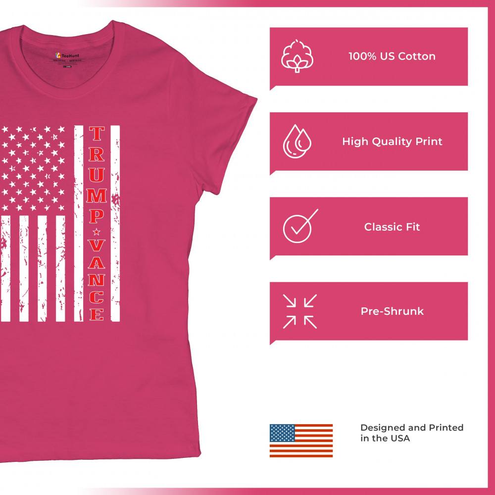 Show your support for Trump Vance 2024 with a bold, rustic American flag design. Perfect for rallies and daily wear. Patriotic and durable.