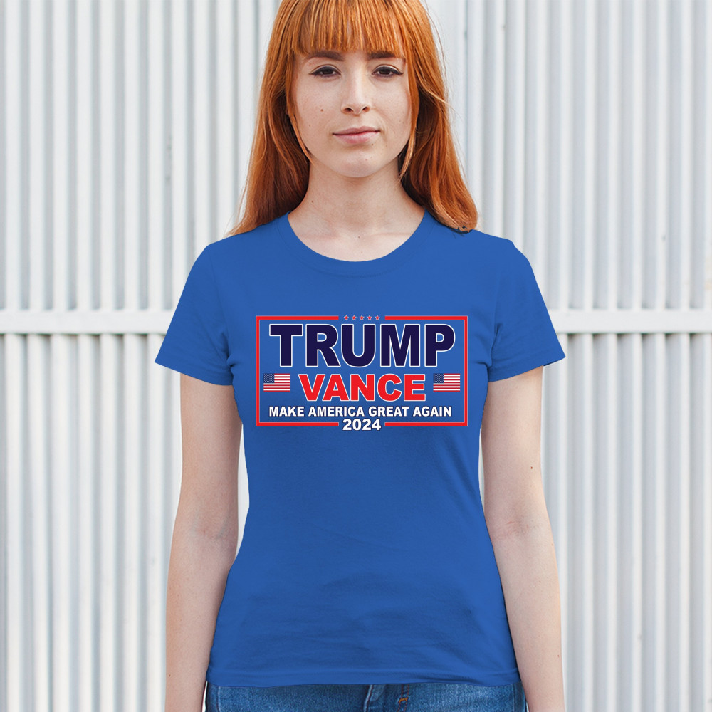 Express your support for the Trump-Vance 2024 campaign with this bold and patriotic design. Highlighting the American flag and the impactful "Make America Great Again" slogan, this design is ideal for those who stand by conservative values. Perfect for attending rallies, political events, or as an everyday statement piece, it symbolizes victory, resilience, and the indomitable American spirit. Show your dedication to the cause and rally fellow supporters with this unique and powerful design. Wear it with pride and make a statement wherever you go.