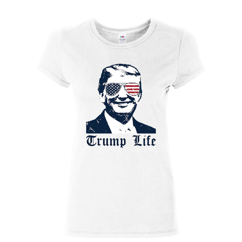 TRUMP LIFE women's t-shirt 45th maga keep america great thug life parody shirt white