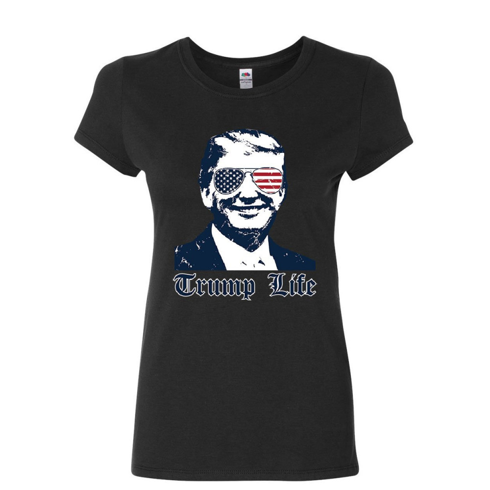 TRUMP LIFE women's t-shirt 45th maga keep america great thug life parody shirt black