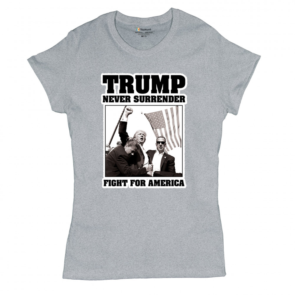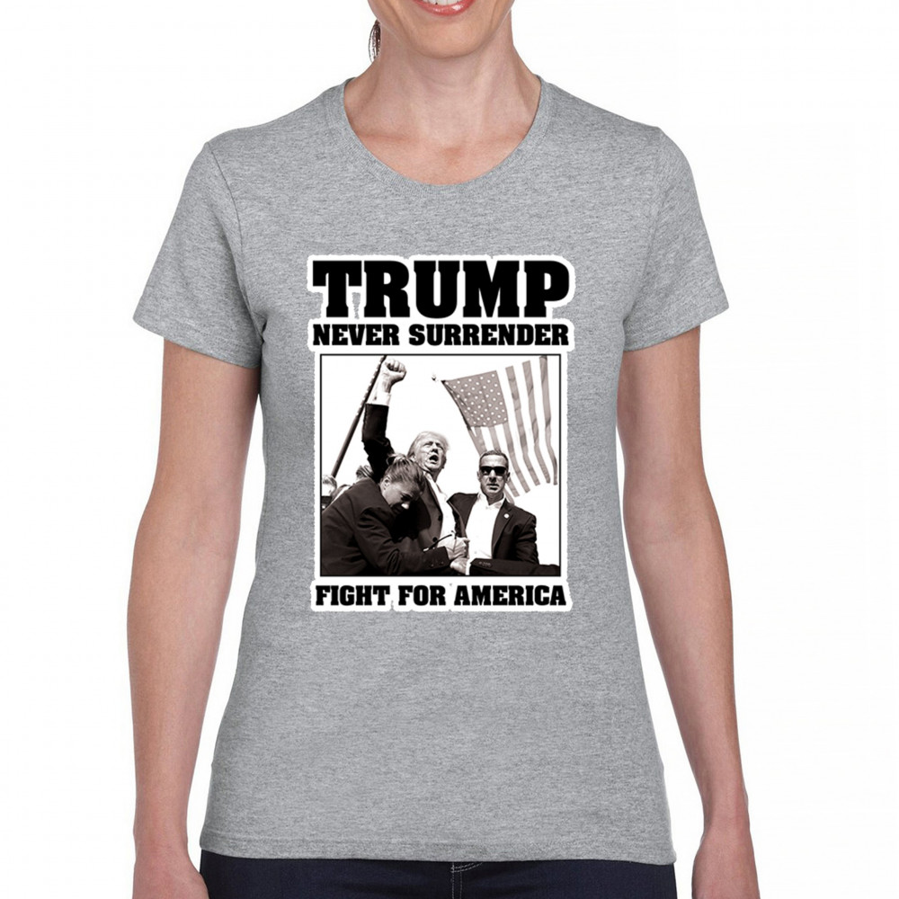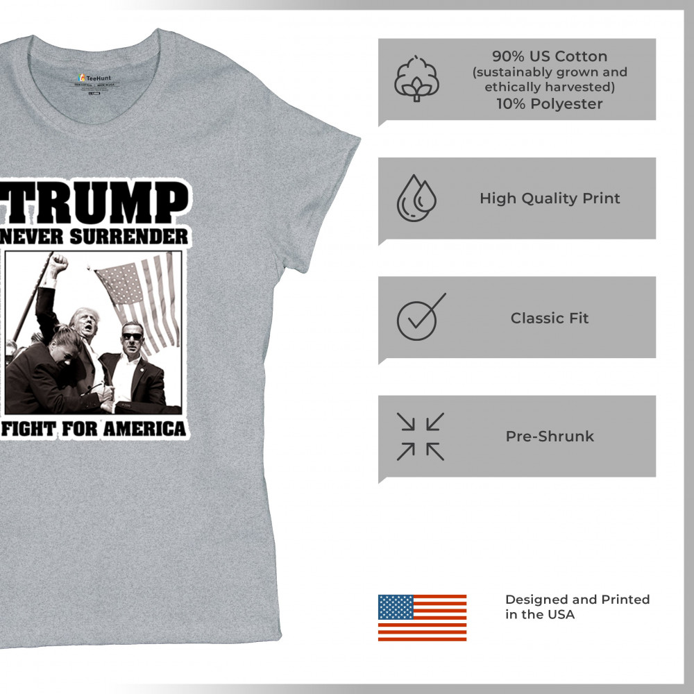 Express your unwavering support with the bold "Trump Never Surrender" design, perfect for rallies and everyday wear. Durable and stylish, show your patriotism proudly.