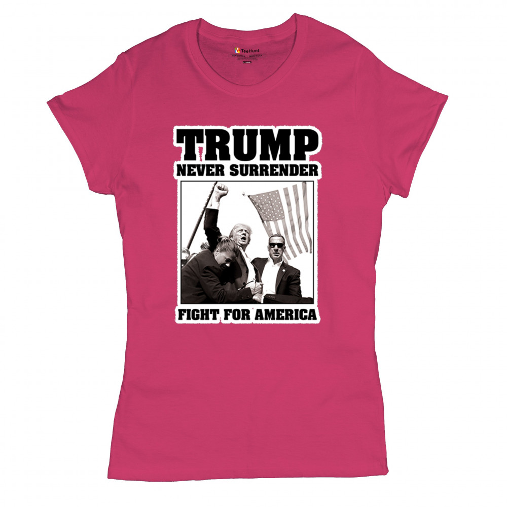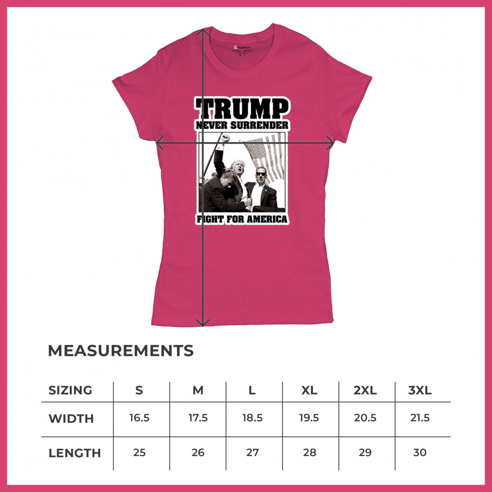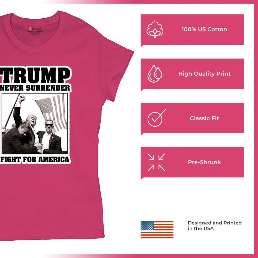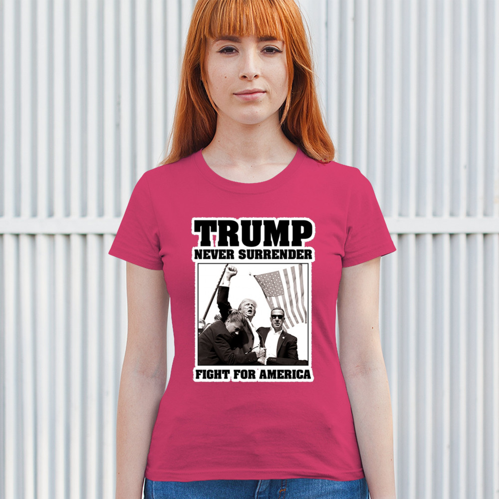 Express your unwavering support with the bold "Trump Never Surrender" design, perfect for rallies and everyday wear. Durable and stylish, show your patriotism proudly.