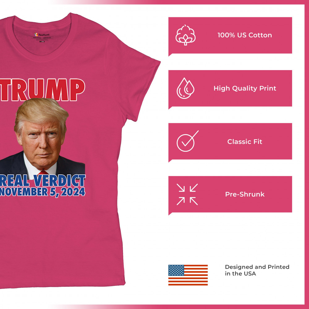 Show your support for Donald Trump with our bold "Real Verdict November 5, 2024" design. Perfect for Trump supporters, MAGA movement enthusiasts, and those who mock Biden with the "Let's Go Brandon" slogan.