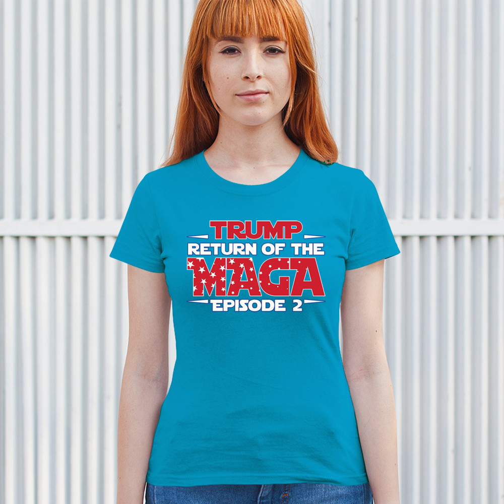 Make a bold statement with the "Return of the MAGA: Episode 2" design, celebrating Donald J. Trump and the Red Wave movement. Perfect for conservatives, Trump supporters, and Republicans who champion America First values, freedom, and the fight for a better future. A must-have for those who never surrender and stand for the people's mandate.