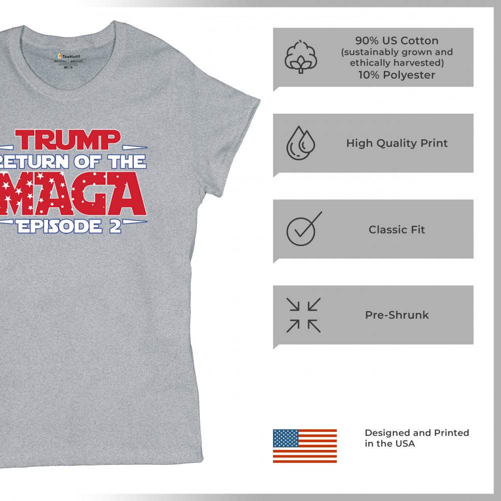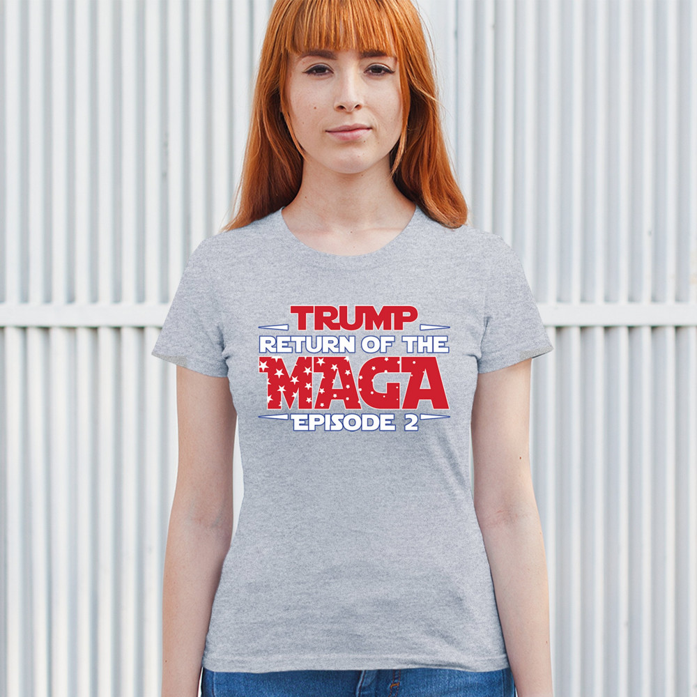 Make a bold statement with the "Return of the MAGA: Episode 2" design, celebrating Donald J. Trump and the Red Wave movement. Perfect for conservatives, Trump supporters, and Republicans who champion America First values, freedom, and the fight for a better future. A must-have for those who never surrender and stand for the people's mandate.