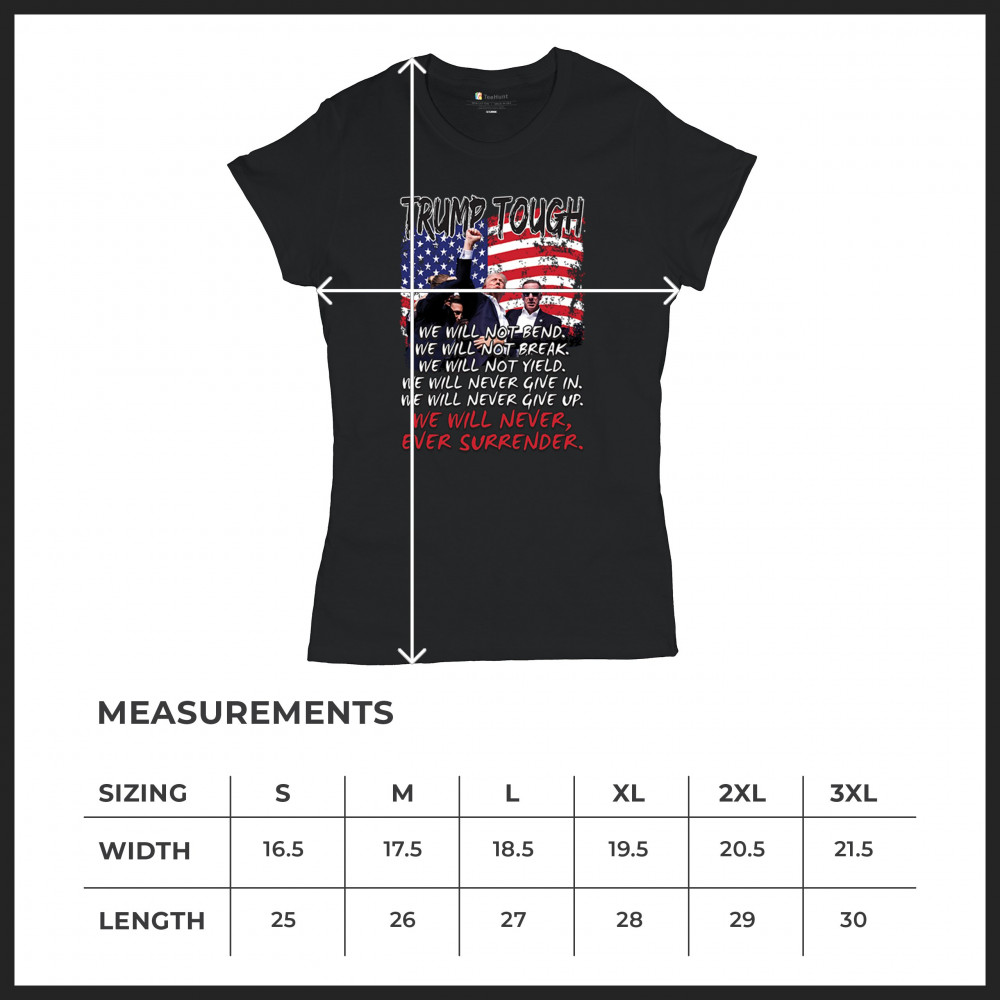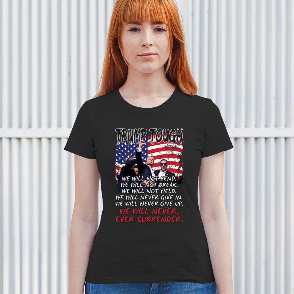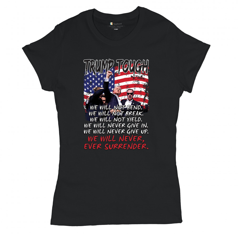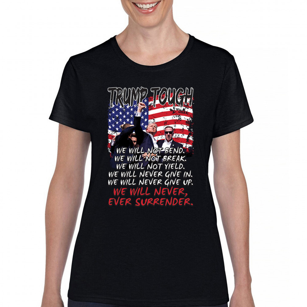 TRUMP TOUGH NEVER SURRENDER t-shirt 24 president take america back women's tee black