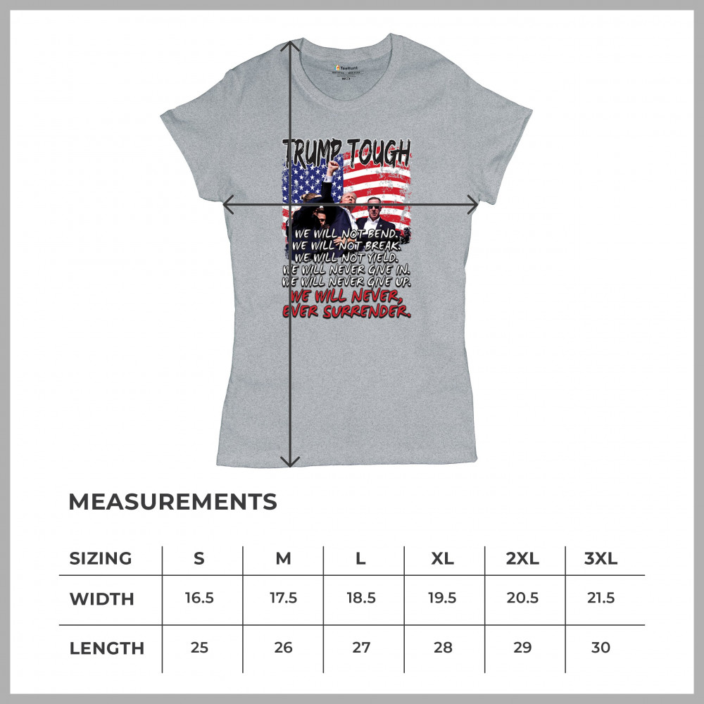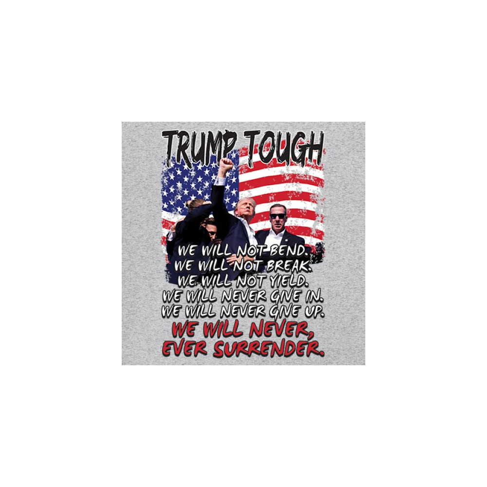 Display your unwavering support for Donald Trump with this powerful design. Crafted for those who believe in conservative values and the America First agenda, it’s perfect for any rally or event. With a striking image and the American flag in the background, this design embodies the spirit of those who refuse to give up or surrender. Show your dedication and pride every time you wear this. Join the movement and stand firm in your beliefs.