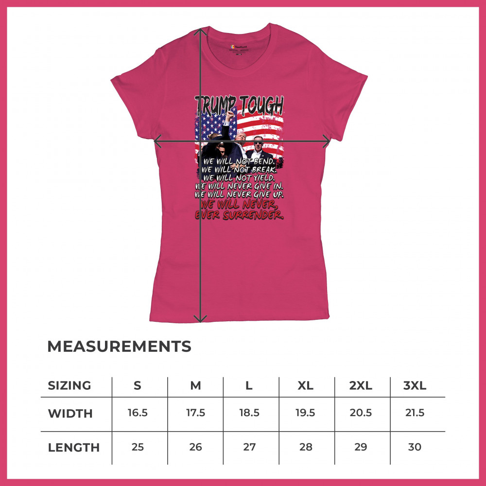 Display your unwavering support for Donald Trump with this powerful design. Crafted for those who believe in conservative values and the America First agenda, it’s perfect for any rally or event. With a striking image and the American flag in the background, this design embodies the spirit of those who refuse to give up or surrender. Show your dedication and pride every time you wear this. Join the movement and stand firm in your beliefs.