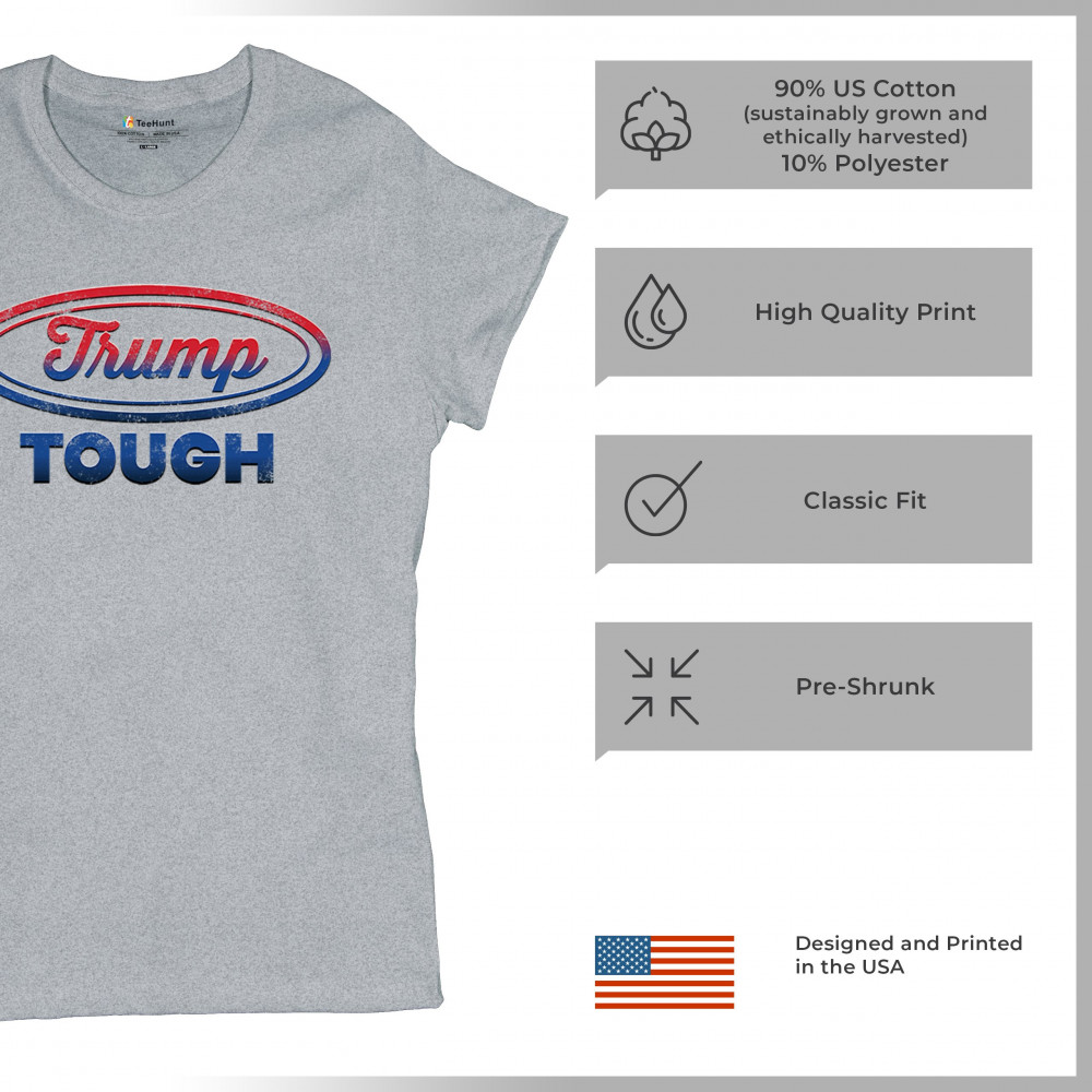Embrace the "Trump Tough" spirit—show your support for conservative values, America first, and the American flag. Perfect for rallies or daily wear.