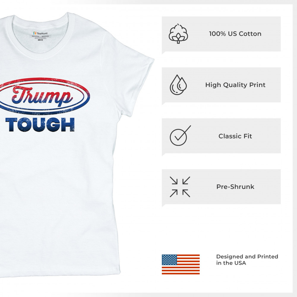 Embrace the "Trump Tough" spirit—show your support for conservative values, America first, and the American flag. Perfect for rallies or daily wear.
