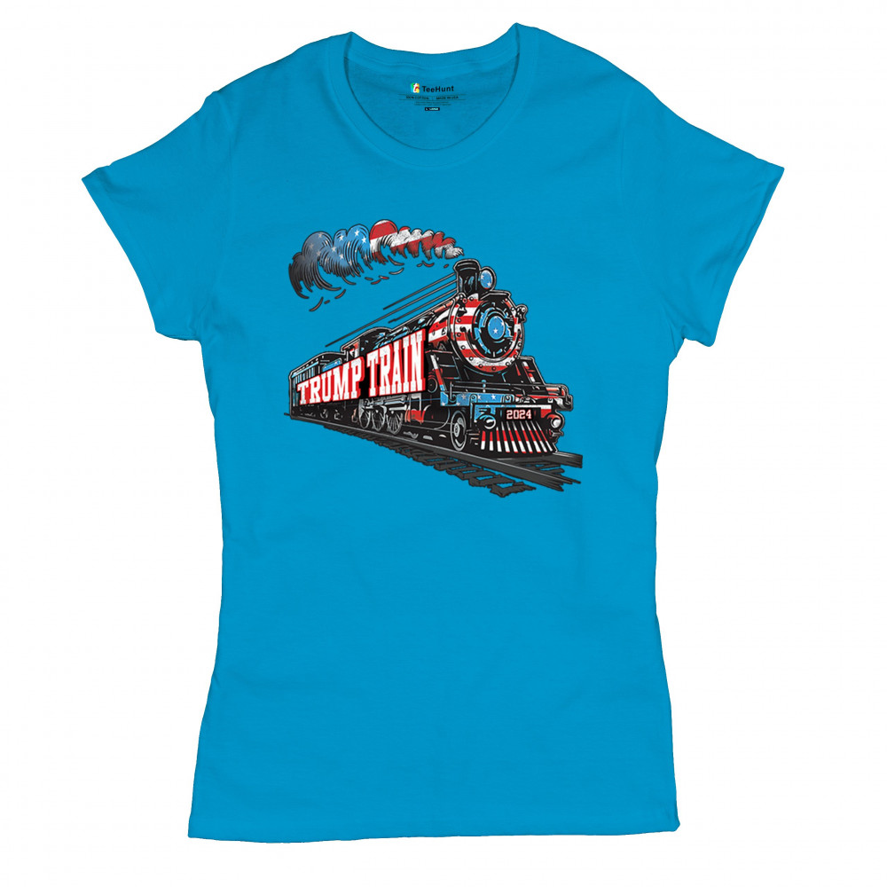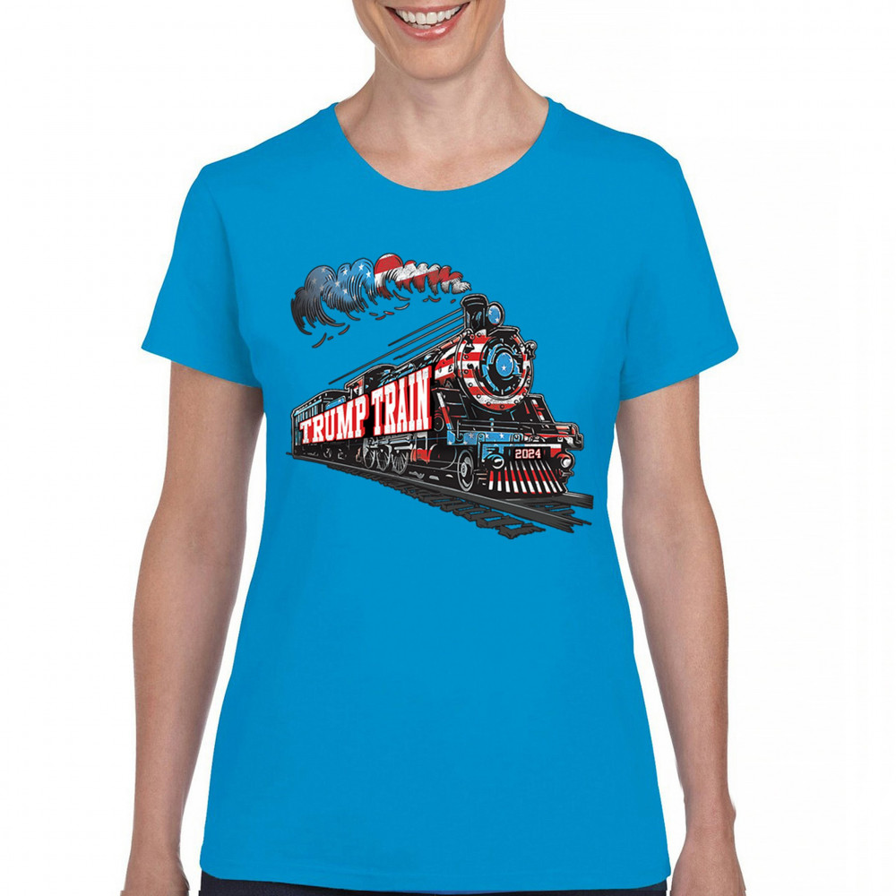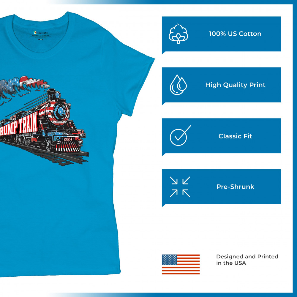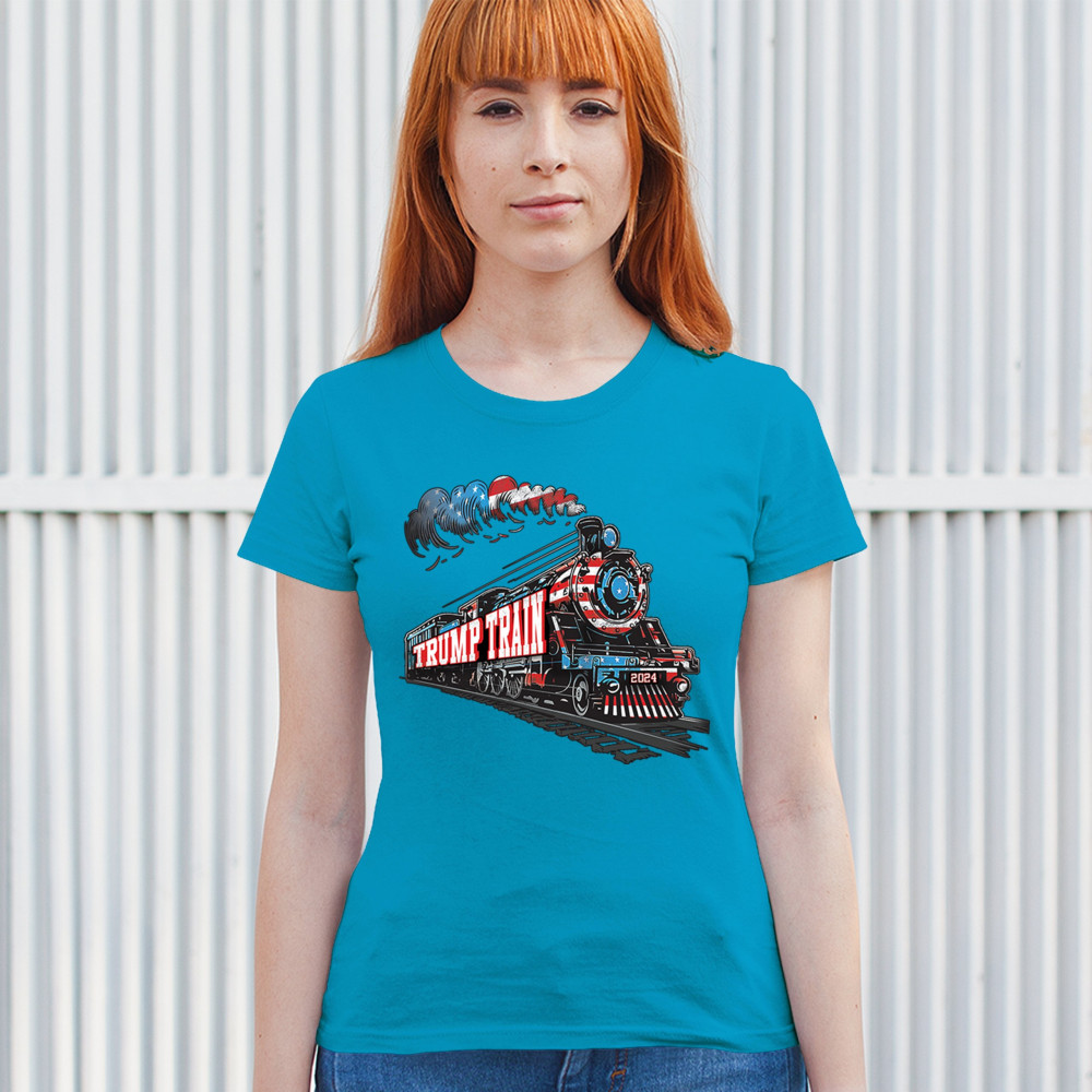Hop on the Trump Train and support America First! This bold, patriotic tee is perfect for Republicans, conservatives, and the Red Wave movement.