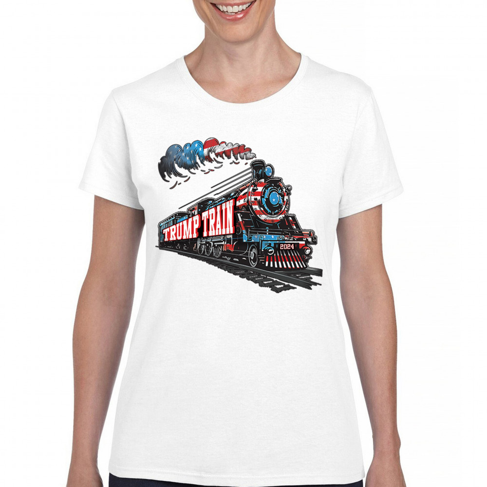 Hop on the Trump Train and support America First! This bold, patriotic tee is perfect for Republicans, conservatives, and the Red Wave movement.