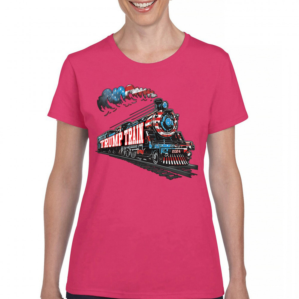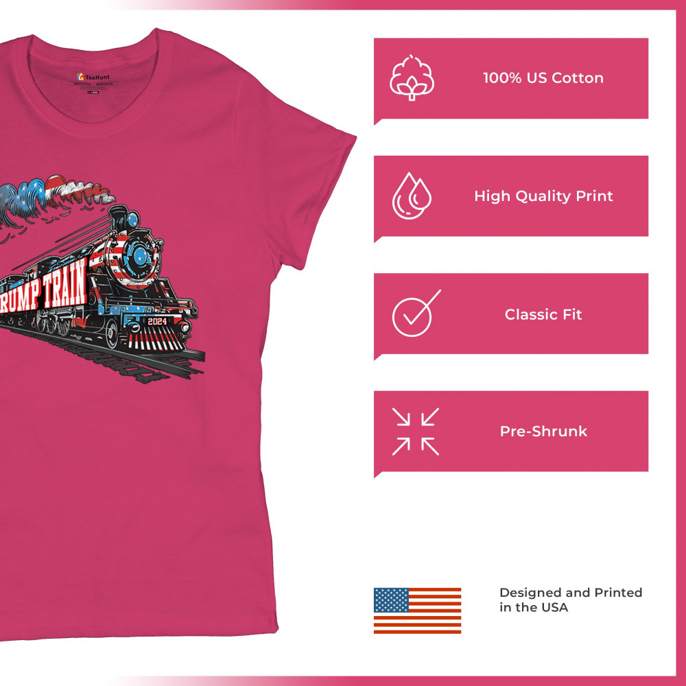 Hop on the Trump Train and support America First! This bold, patriotic tee is perfect for Republicans, conservatives, and the Red Wave movement.