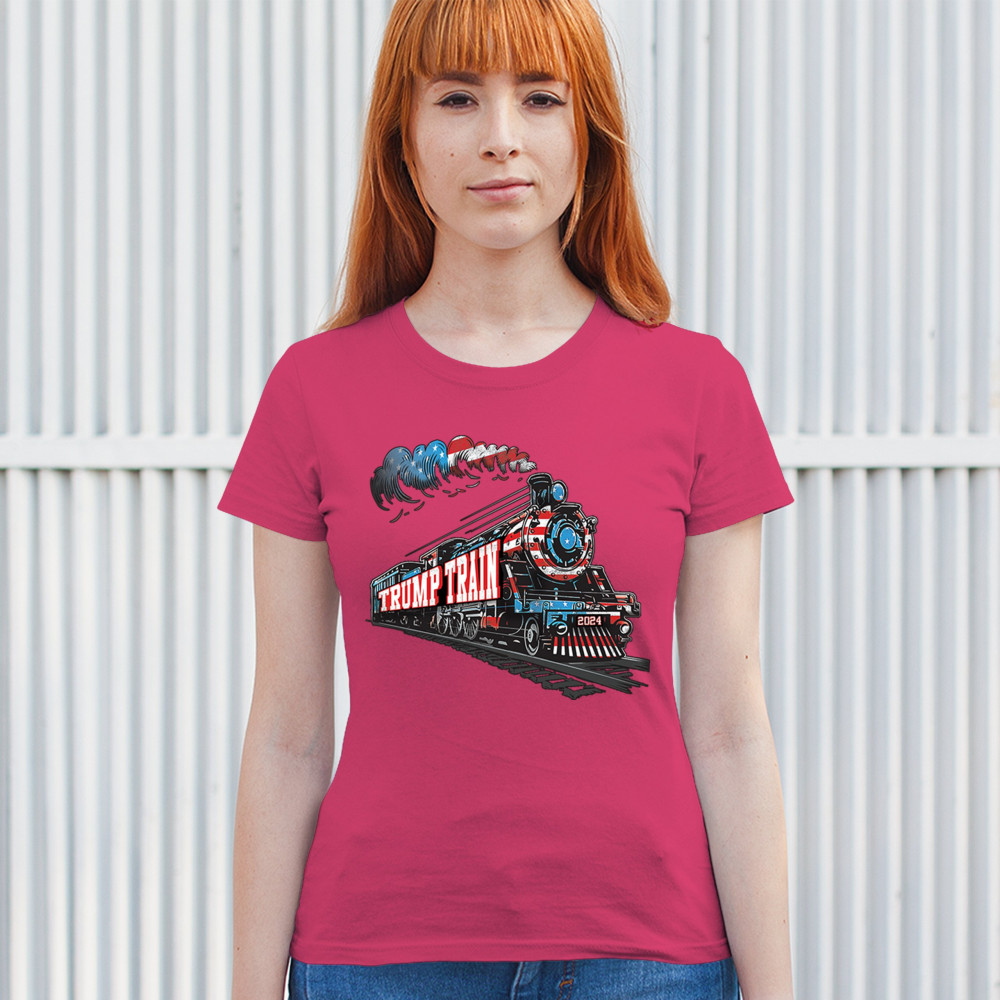 Celebrate the Trump Train with this bold, patriotic design. Featuring a steam engine wrapped in the American flag, this tee is perfect for Trump supporters and conservatives looking to make a statement. Join the Red Wave, fight for victory, and showcase your support for the 47th President. Whether at rallies or casual events, this design represents we the people have spoken and the push for 4 More Years.