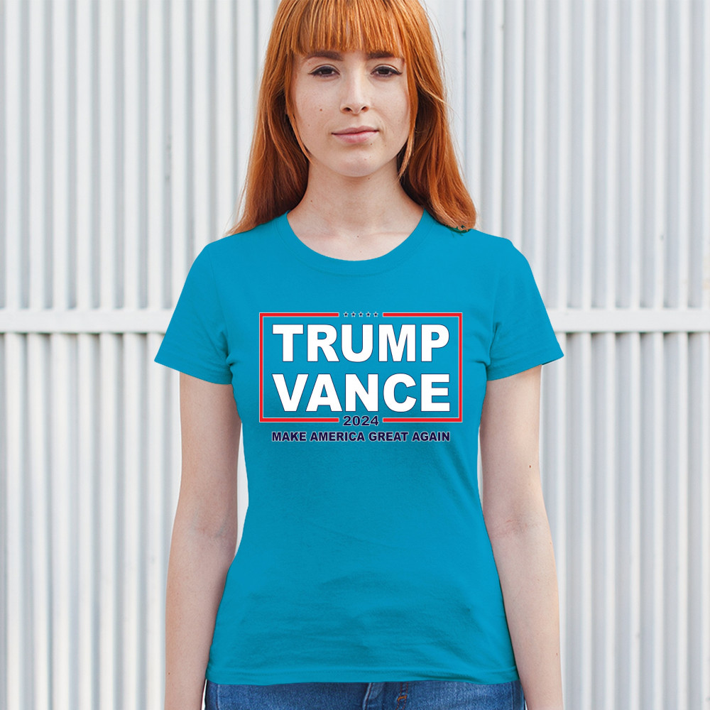 Showcase your support for the Trump-Vance 2024 campaign with this eye-catching design. Emblazoned with the "Make America Great Again" slogan, this artwork is perfect for conservative rallies, political gatherings, or simply expressing your political views. The striking red, white, and blue colors highlight your American pride and dedication to the conservative movement. Comfortable and stylish, this design is a great addition to any wardrobe, allowing you to stand out and make a statement wherever you go.