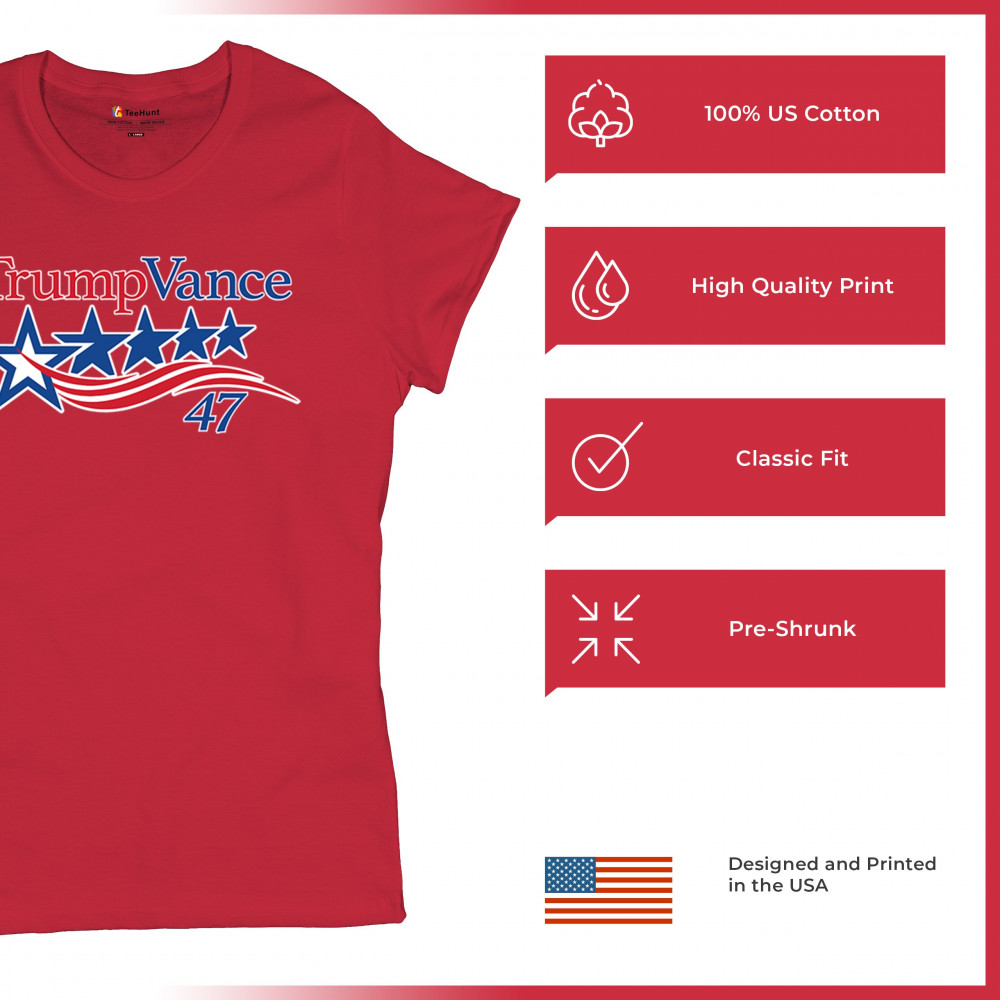 Patriotic "Trump Vance 47" design celebrating America First, conservative values, and the Red Wave, supporting Donald J. Trump as the 47th President.