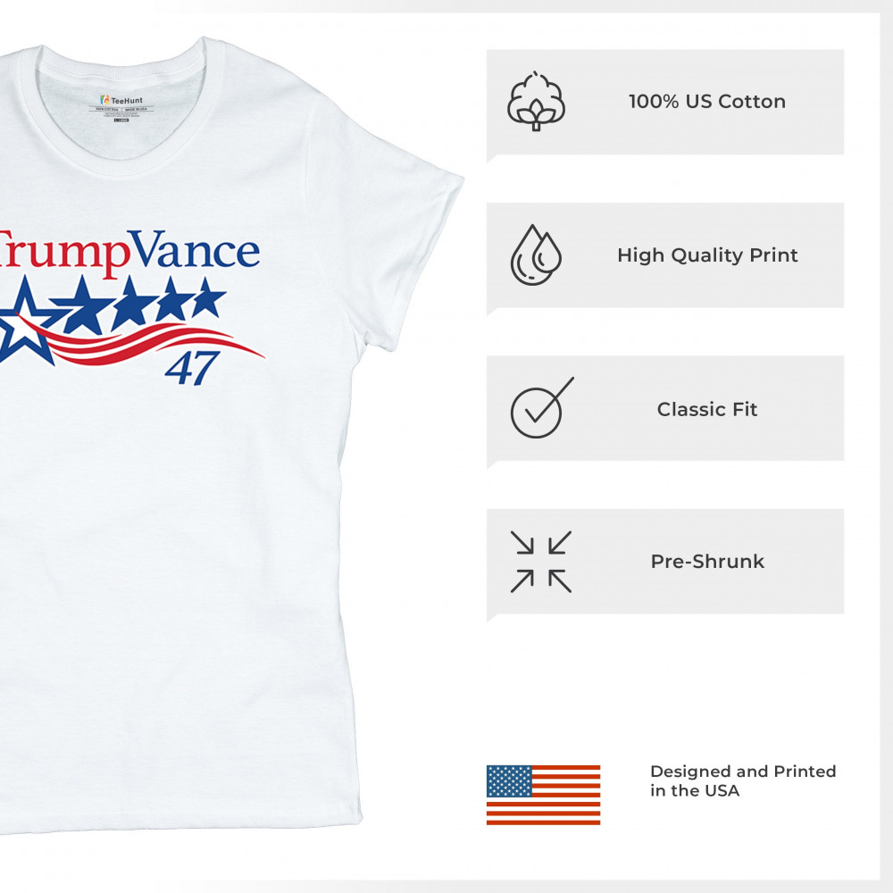 Patriotic "Trump Vance 47" design celebrating America First, conservative values, and the Red Wave, supporting Donald J. Trump as the 47th President.