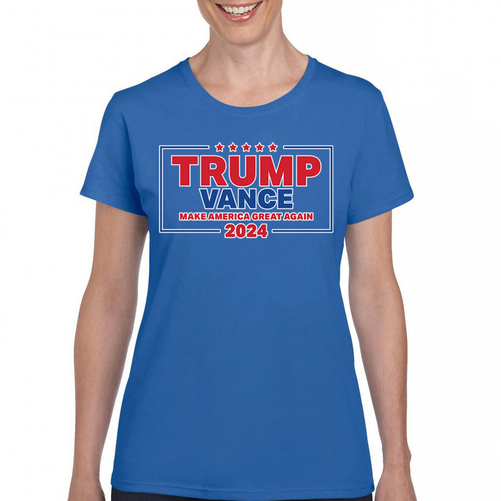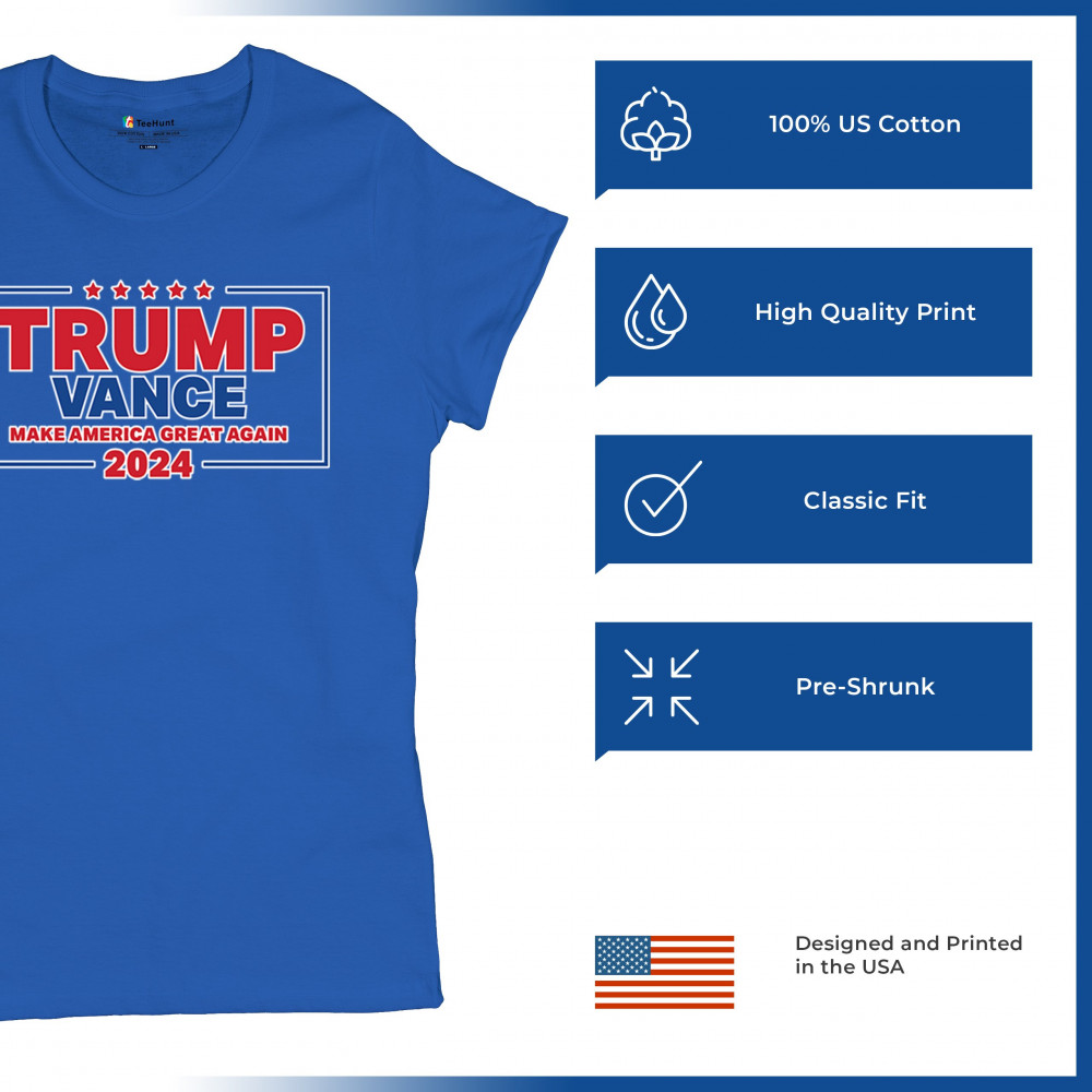 Show your support for Trump-Vance 2024 with this patriotic design featuring the American flag and bold slogan. Perfect for rallies and conservative events.