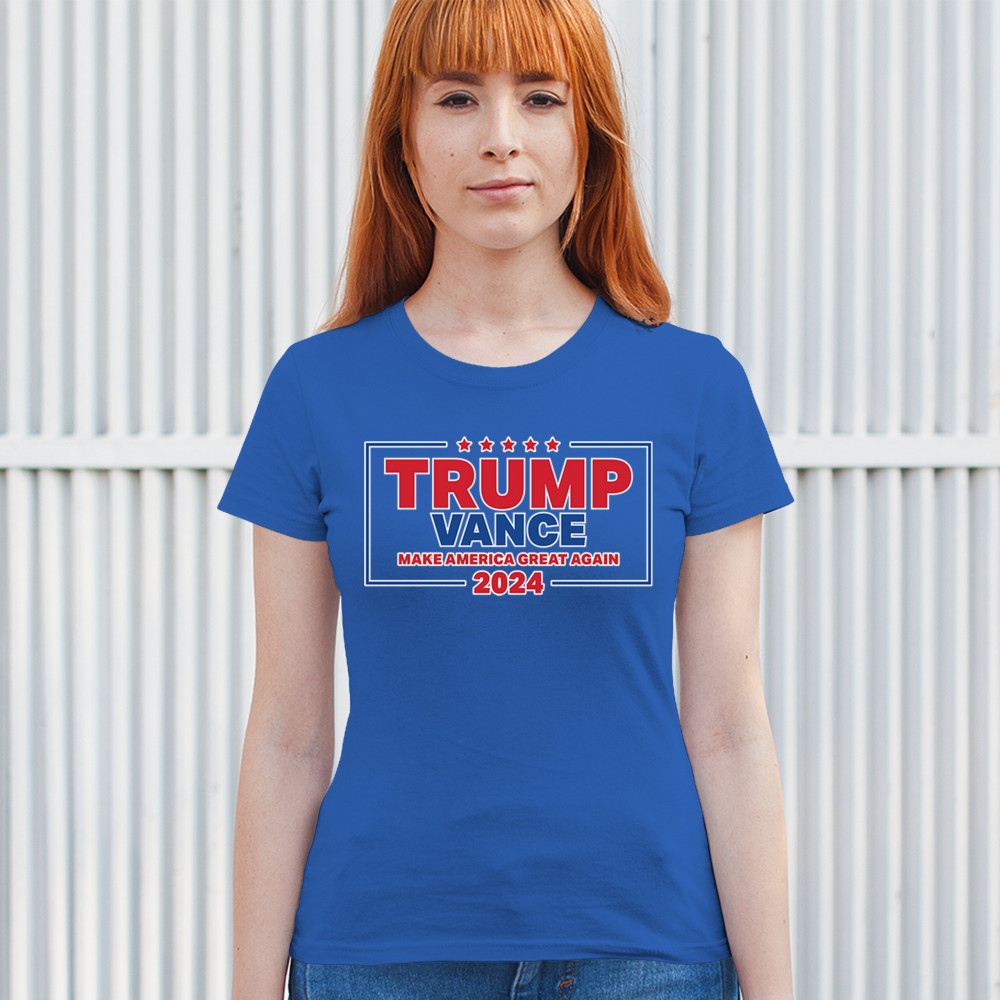 Express your support for the Trump-Vance 2024 campaign with this striking design that embodies American patriotism and conservative values. Featuring the American flag and the bold slogan "Trump Vance 2024," this design is perfect for rallies, political events, or daily wear. It’s a testament to your unwavering support for conservative ideals and the vision of making America great again. Join the movement and show your allegiance with this powerful and iconic design.