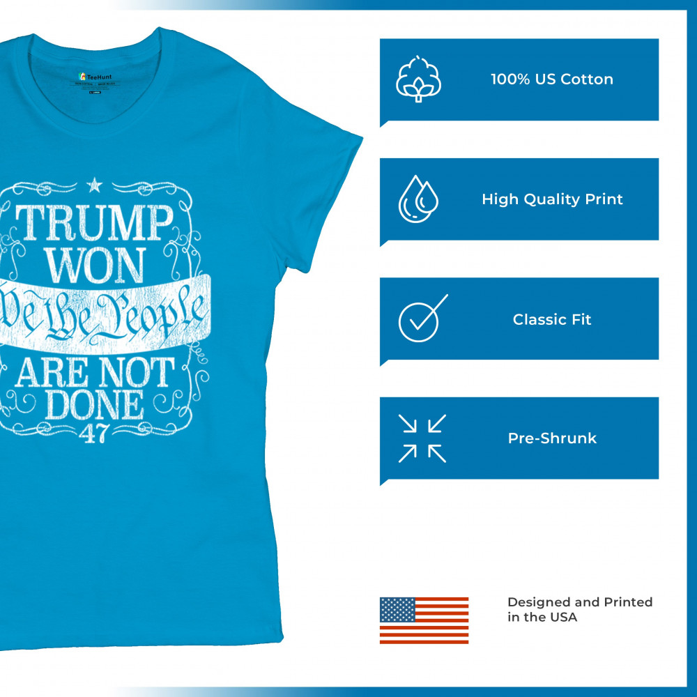 Trump Won design celebrating conservative victory, "We the People," and unity. Perfect for patriots and Republican supporters of the Red Wave.
