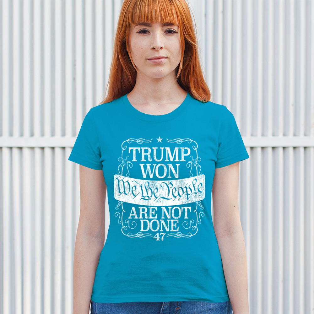 Celebrate the power of "We the People" with this "Trump Won" design, a rallying cry for those who support Donald J. Trump and the Republican movement. Featuring bold typography and a message of resilience, it embodies the conservative fight for victory and unity. Perfect for events, gifts, or everyday wear, it’s a powerful statement of faith in the party of common sense and the people's mandate.