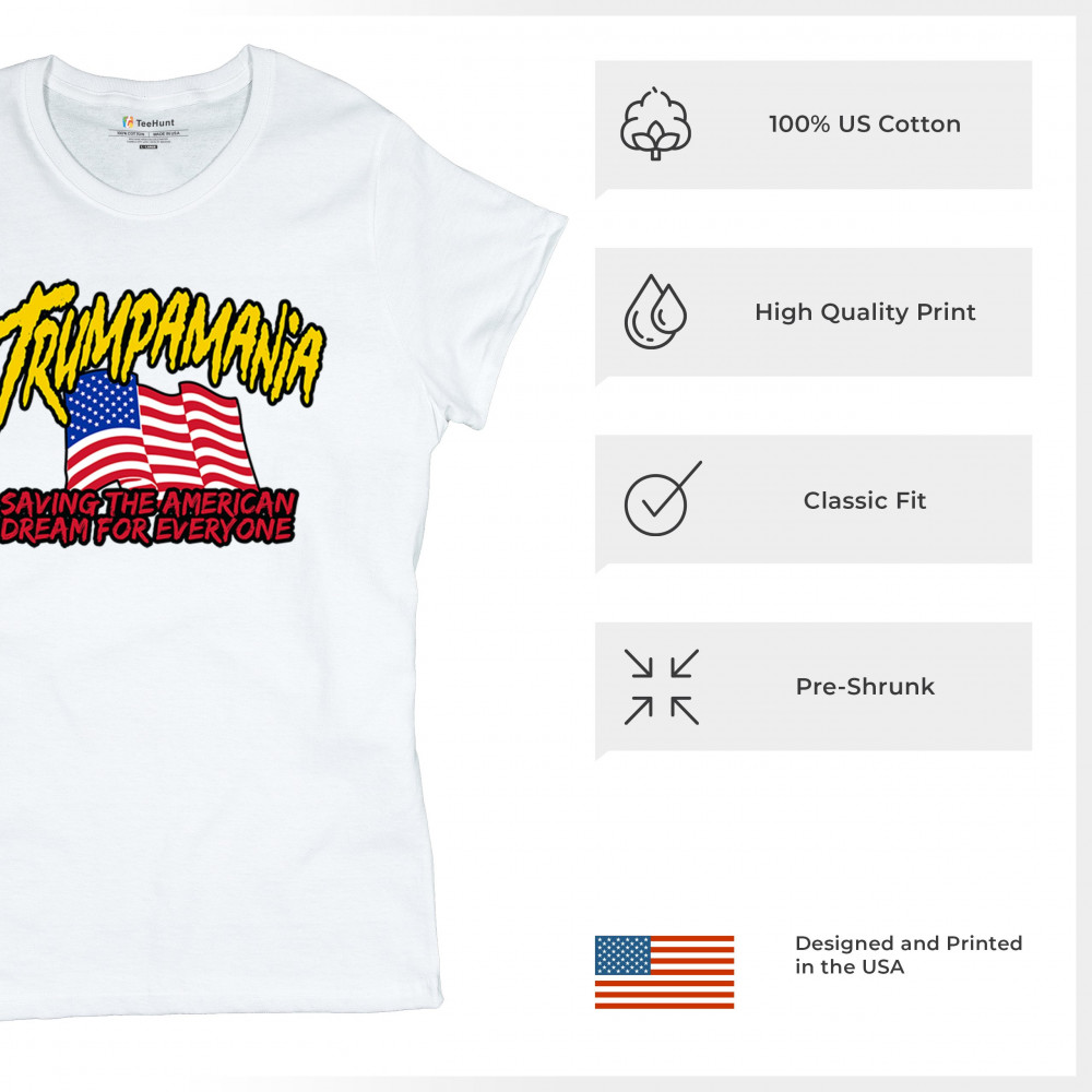 Show your patriotic pride with the "Trumpamania" design. Perfect for rallies, it embodies conservatism, trust in God, and the fight for America.