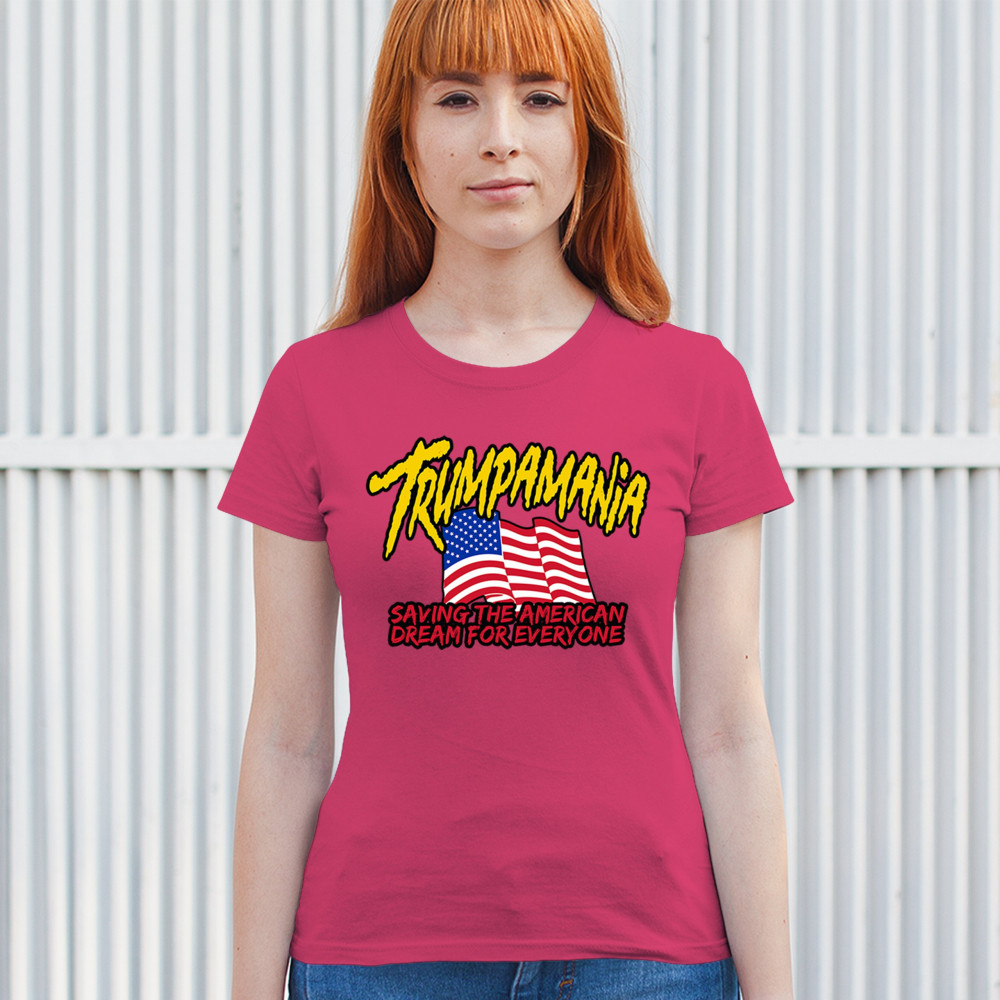 Show your patriotic pride with the "Trumpamania" design. Perfect for rallies, it embodies conservatism, trust in God, and the fight for America.