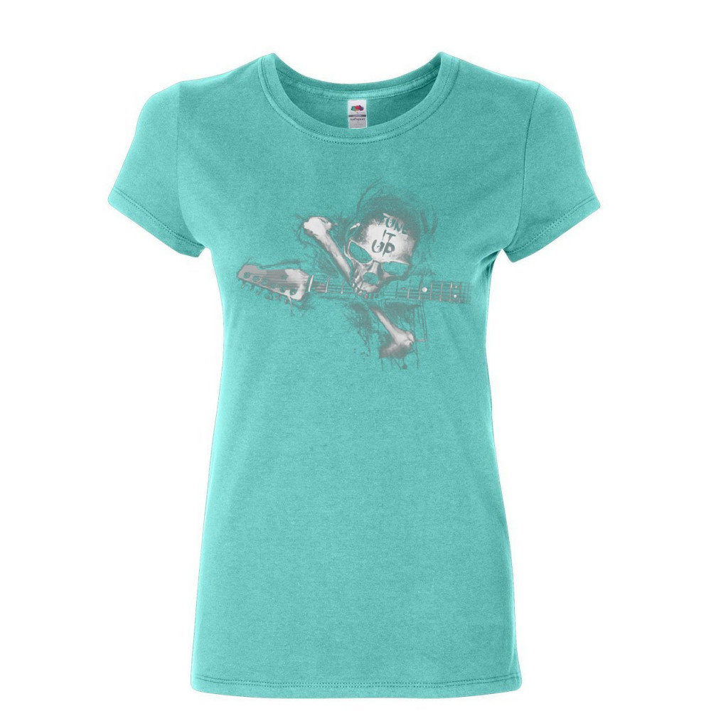 TUNE IT UP MUSIC women's t-shirt skulls guitar death metal hard rock shirt light blue