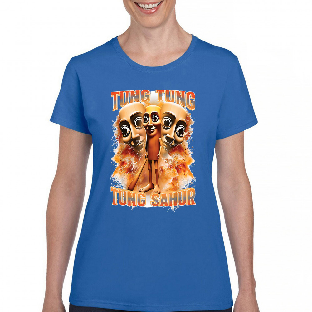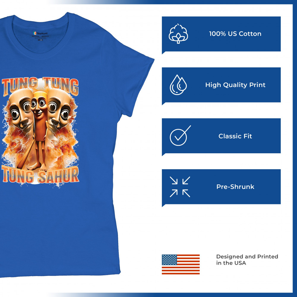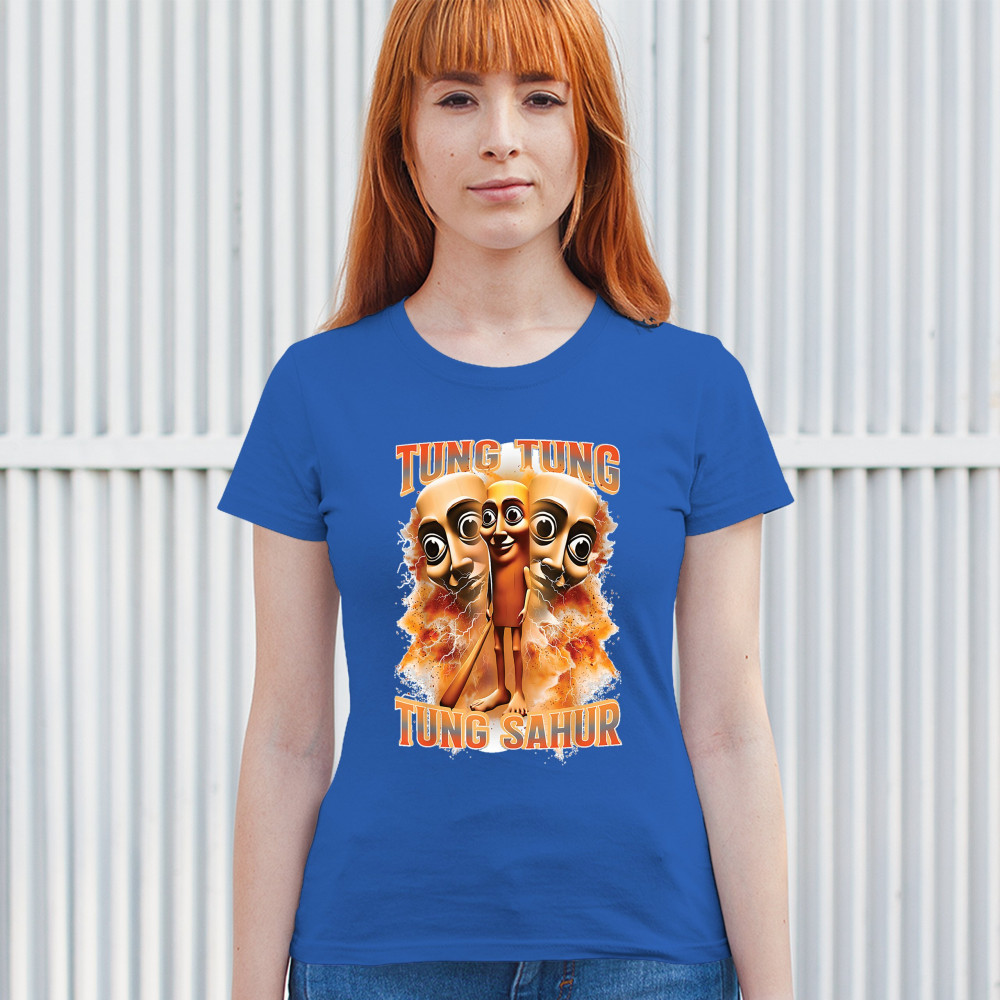 Brace yourself for pure meme insanity with the Tung Tung Tung Sahur shirt—a cursed-core fever dream built from TikTok chaos and Gen Z humor. This design blends internet meme culture, ironic fashion, brainrot visuals, and Gen Alpha absurdity. Perfect for those who wear memes, laugh at chaos, and live for viral trends.