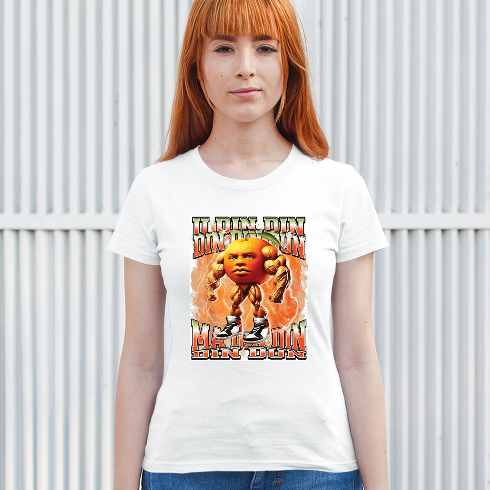 Meet U Din Din Din Din Dun Ma Din Din Din Dun—a jacked-up citrus monstrosity marching straight out of brainrot hell. This design fuses cursed fruit humor, muscle-core absurdity, weirdcore meme style, and TikTok chaos into one deranged fashion statement. Built for meme heads, gym rats with irony, and Gen Z absurdists.