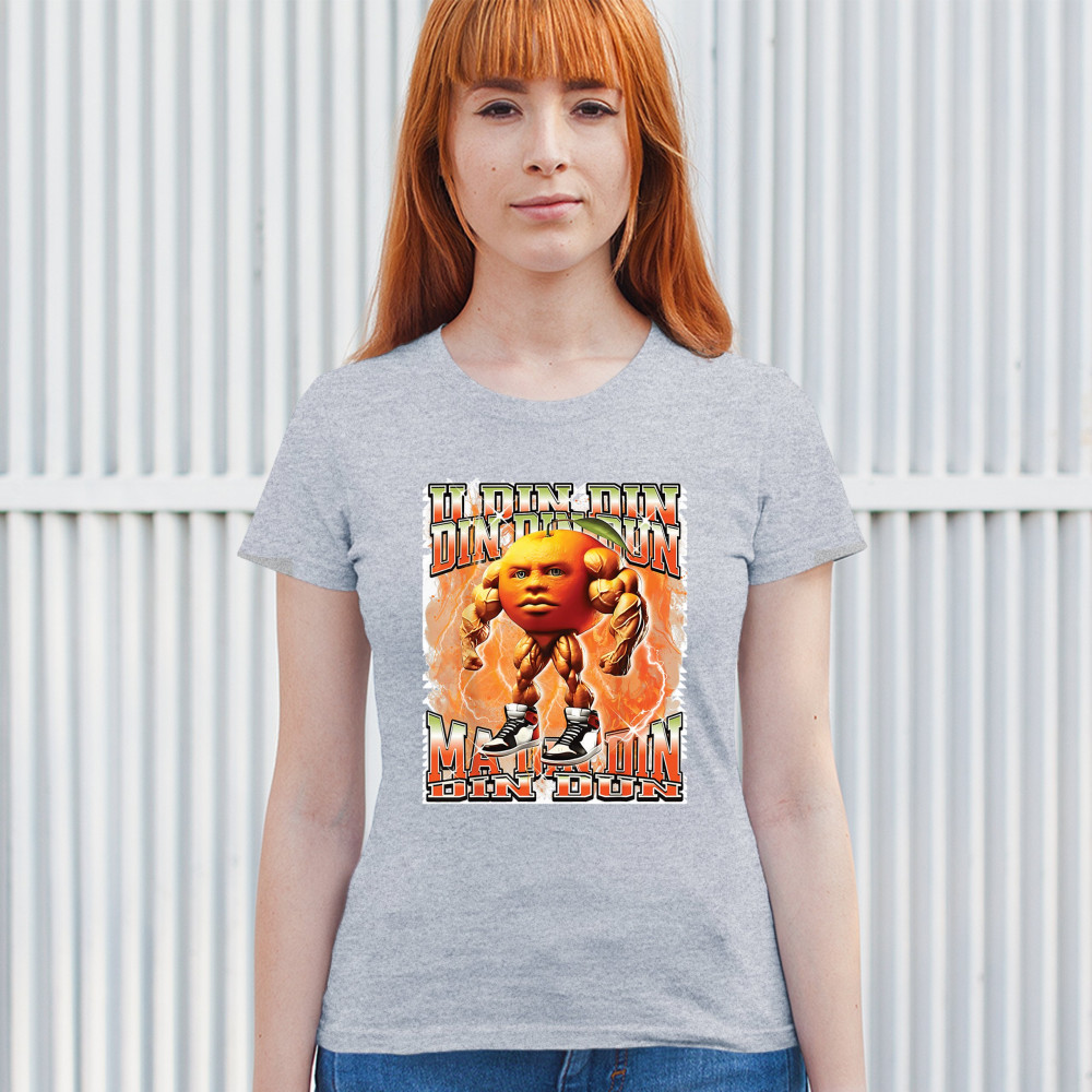 Meet U Din Din Din Din Dun Ma Din Din Din Dun—a jacked-up citrus monstrosity marching straight out of brainrot hell. This design fuses cursed fruit humor, muscle-core absurdity, weirdcore meme style, and TikTok chaos into one deranged fashion statement. Built for meme heads, gym rats with irony, and Gen Z absurdists.